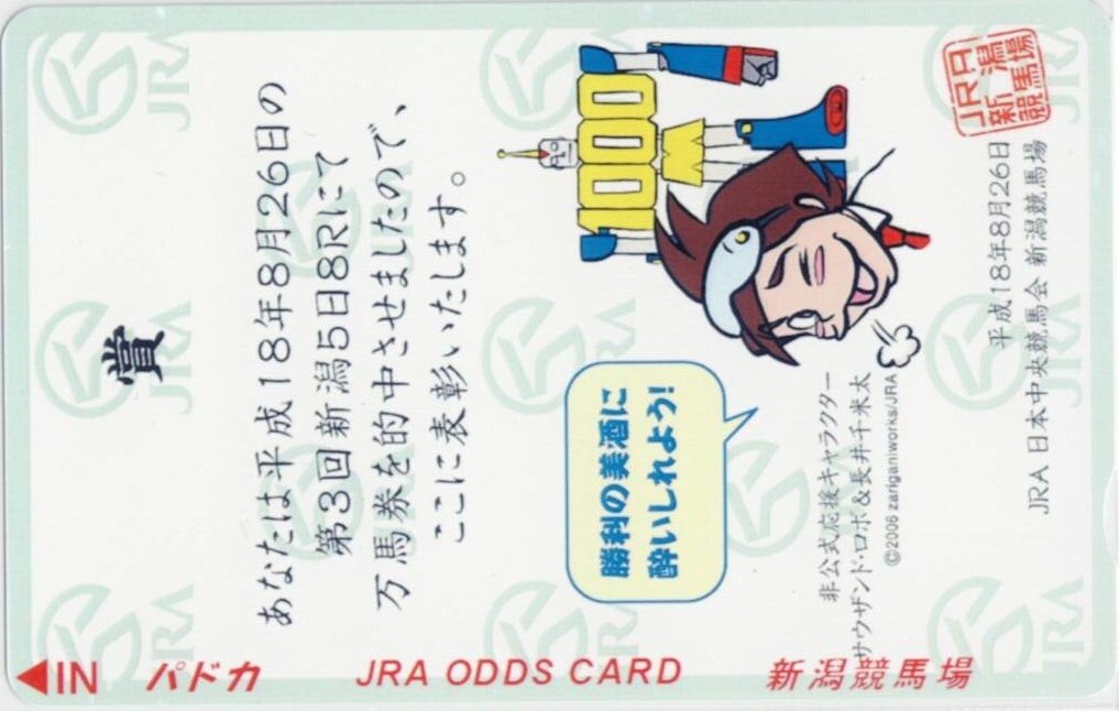 ☆476・競馬・JRAオッズカード55度数パドカ・新潟競馬場・万券的中者・写真参照