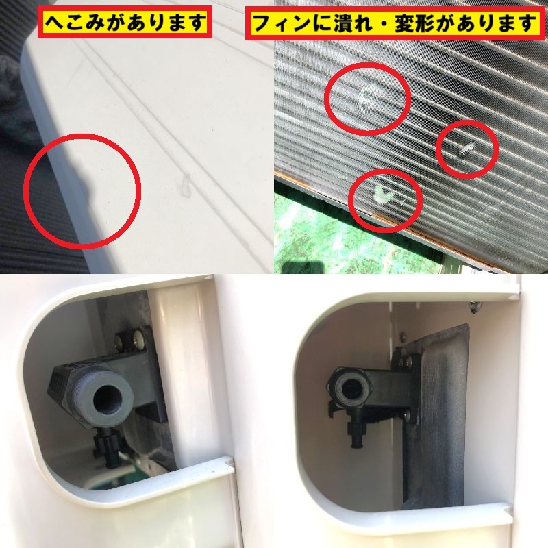 | 商品説明 | ★★商品説明などはよくお読みください★★ https://youtu.be/r_vPwbZ2jGE https://youtu.be/GPh-P6TI5Gw 上記のURLにて、動作確認時の動画を掲載しております。 ※長時間の動作確認は行っておりません。 使い方などは完全に把握しておりませんので、動作確認は 上記の動画の内容までの確認となり、現状での動作内容を よくご確認いただご納得頂ける方のみご入札をお願いいたします。 ・商品は写真にあるものが全てになります。 ・動画のように室外機のファンが回転することや お湯が作られることは確認いたしました。 ※動作確認時には排水バルブが一か所欠品しており お湯張り時にお湯が飛び出ている箇所がありましたが 現在はバルブは付いており漏れることはありません。 ・本体のカバー部品に歪みや変形、汚れ箇所が多々あります。 ・浴室用リモコンの側面にヤケがありました。 ・本体に貼られているステッカーに文字が薄れているものがありました。 ・本体下部に塩ビパイプが伸びておりますが途中で切られておりました。 ・室外機の外観にへこみ個所があり、フィンに潰れや変形がありました。 ・中古品となりますので、経年による使用感キズ・劣化・汚れ等がございます。 画像にてよくご確認の上判断下さいますようお願いいたします。 ・バッテリーやホース・オイル・ブラシなどの消耗品につきましては 保証致しかねますので、交換などが必要な場合は 落札者様にてご用意をお願いいたします。 ・中古品・新古品等に理解の無い方 ・ 新品をお求めの方は入札を お控え下さいますようお願い申し上げます。 ・簡易的な清掃は行っておりますが、細部までの細かい清掃は行えておりません。 ・携帯やスマートフォンからですと拡大画像がご覧になれない 場合がありますので、パソコンから拡大画像をご確認の上 状態の確認をお願いいたします。 ・専門的な確認、質問にはお答え出来ません。 |