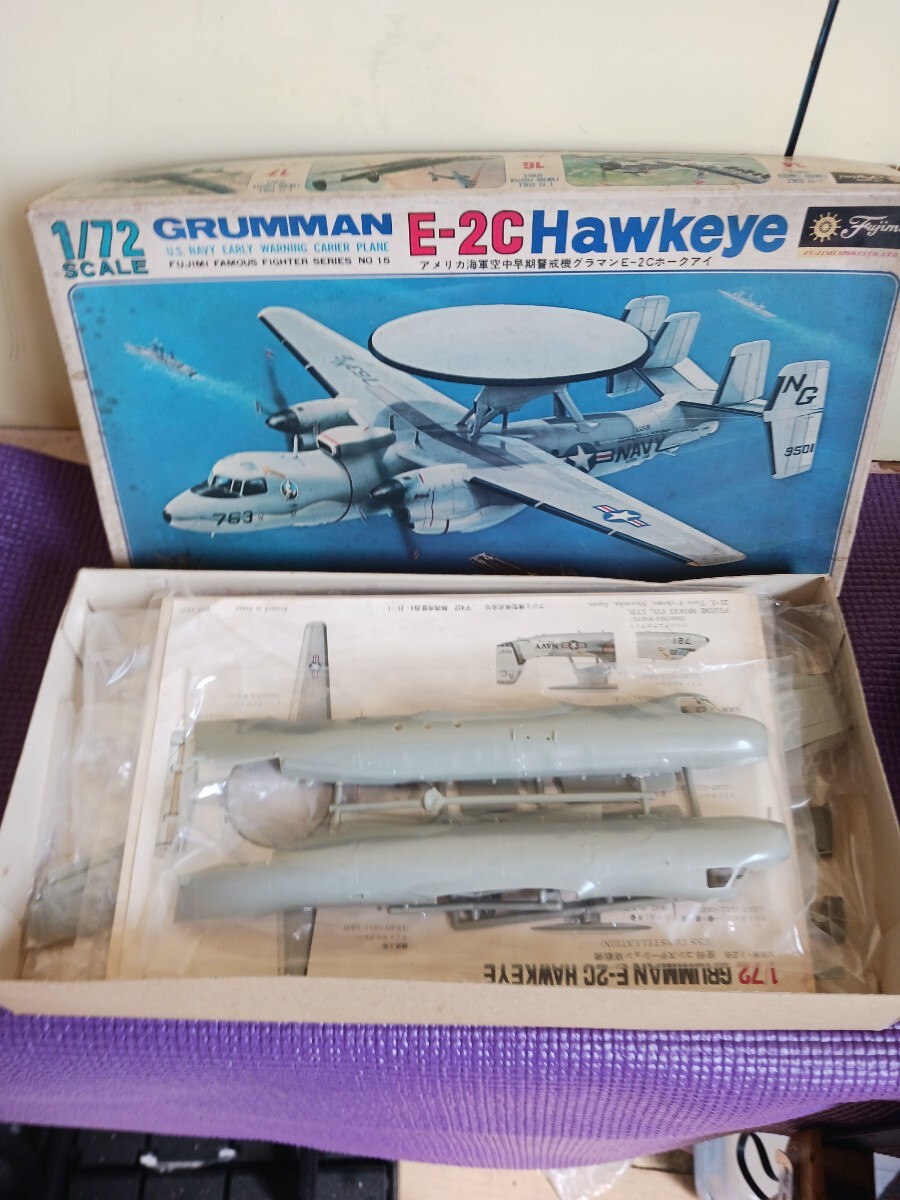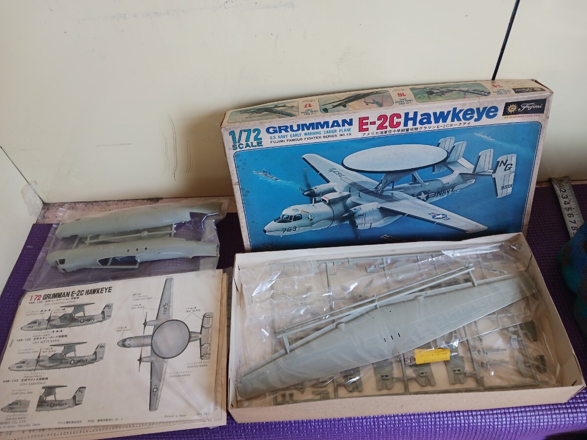 未組立 1/72 グラマン E-2C ホークアイ フジミ アメリカ海軍空中早期警戒機 プラモデル 昭和レトロ 当時物 箱付きですり