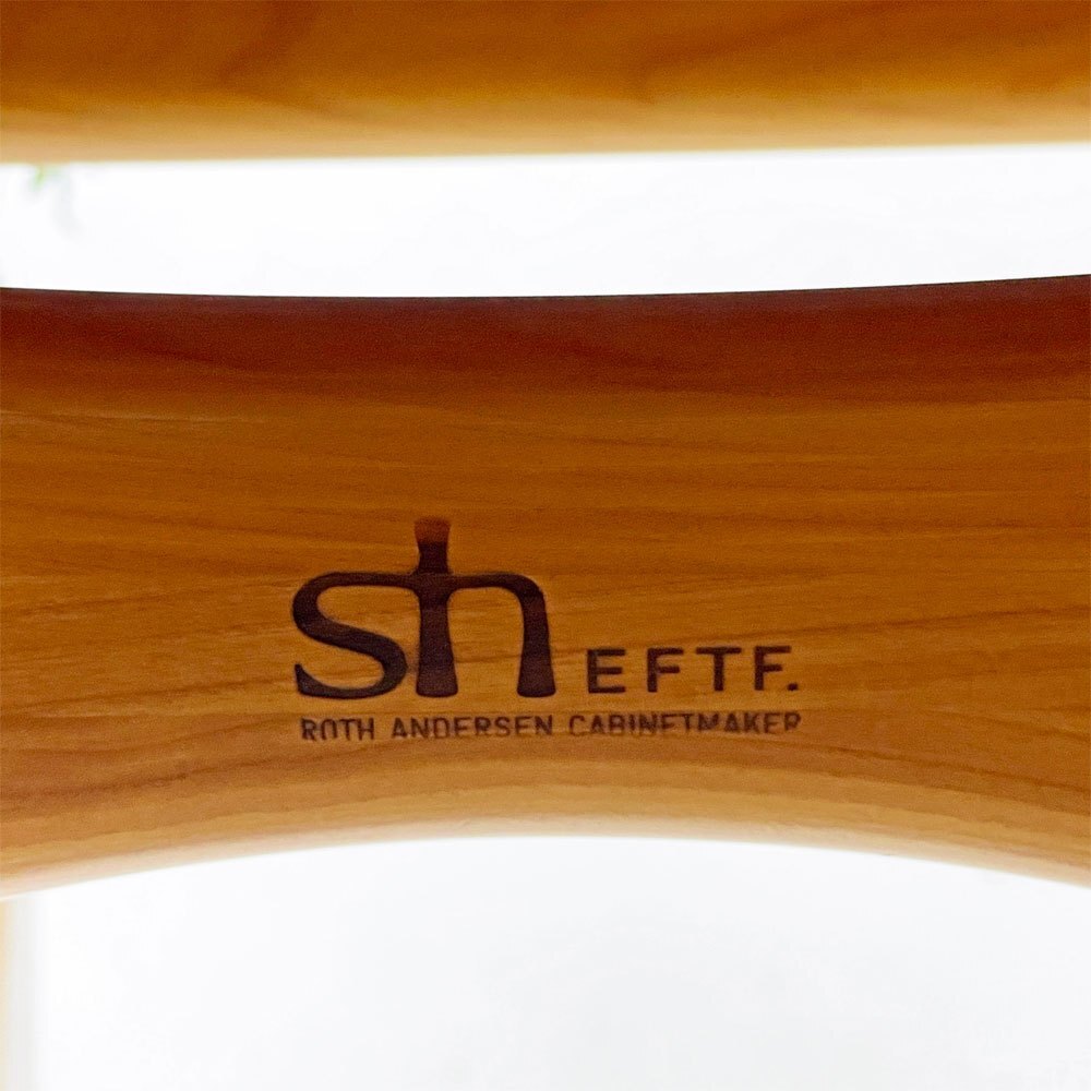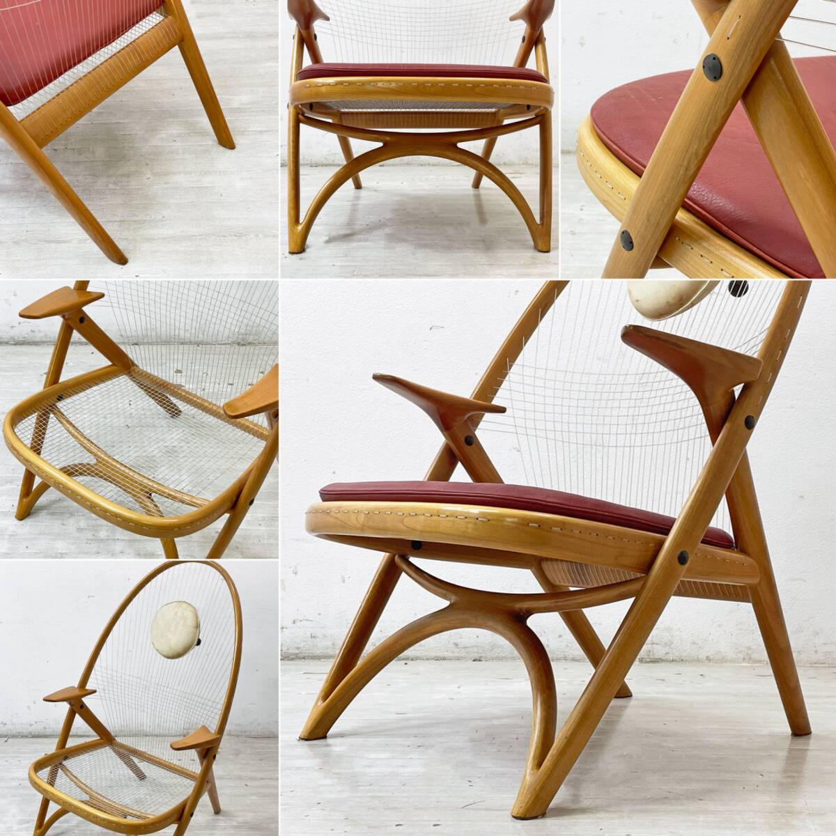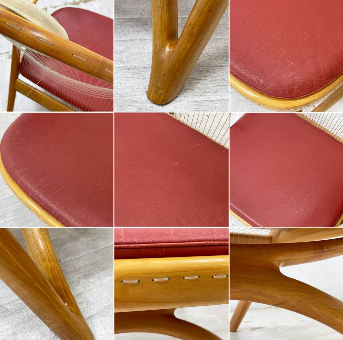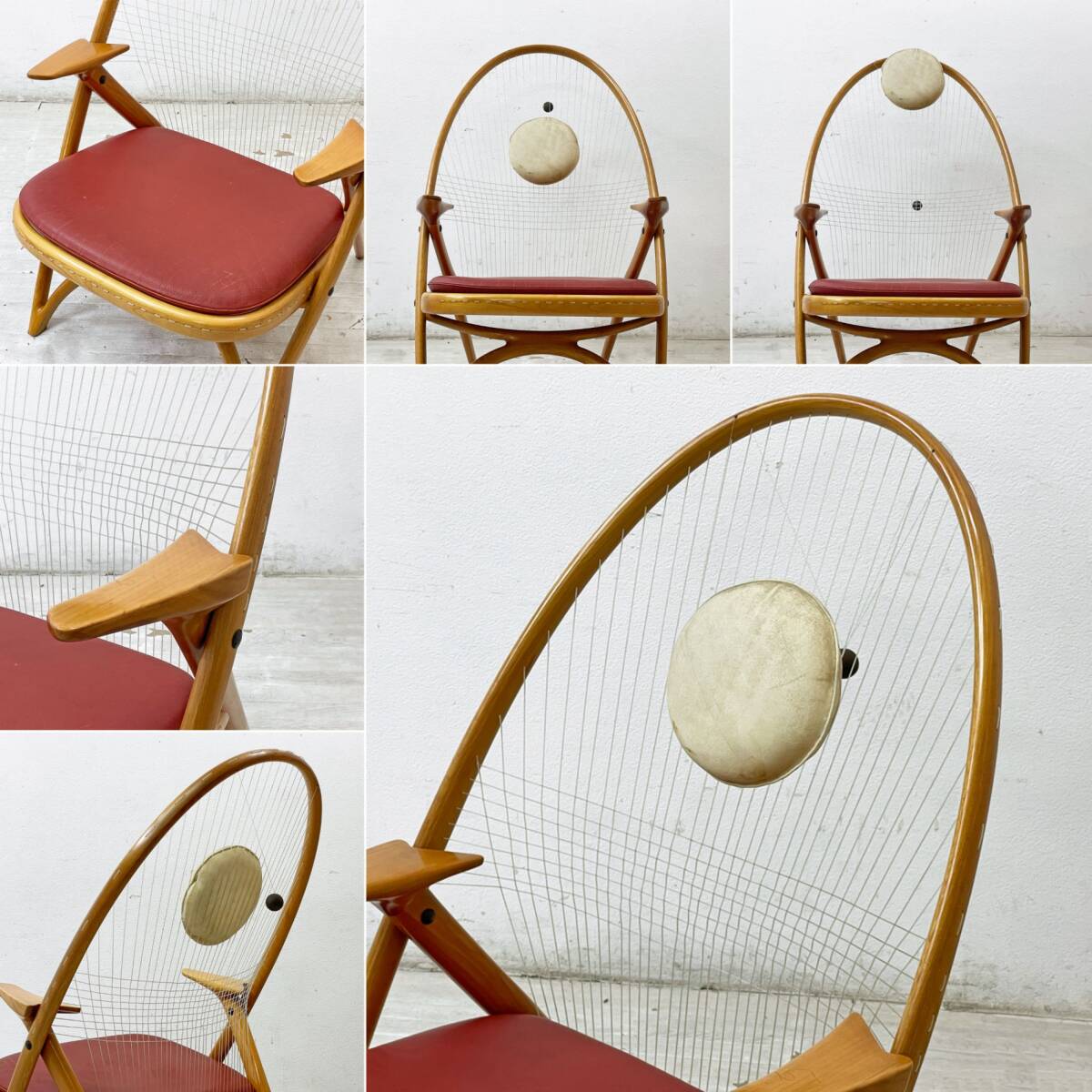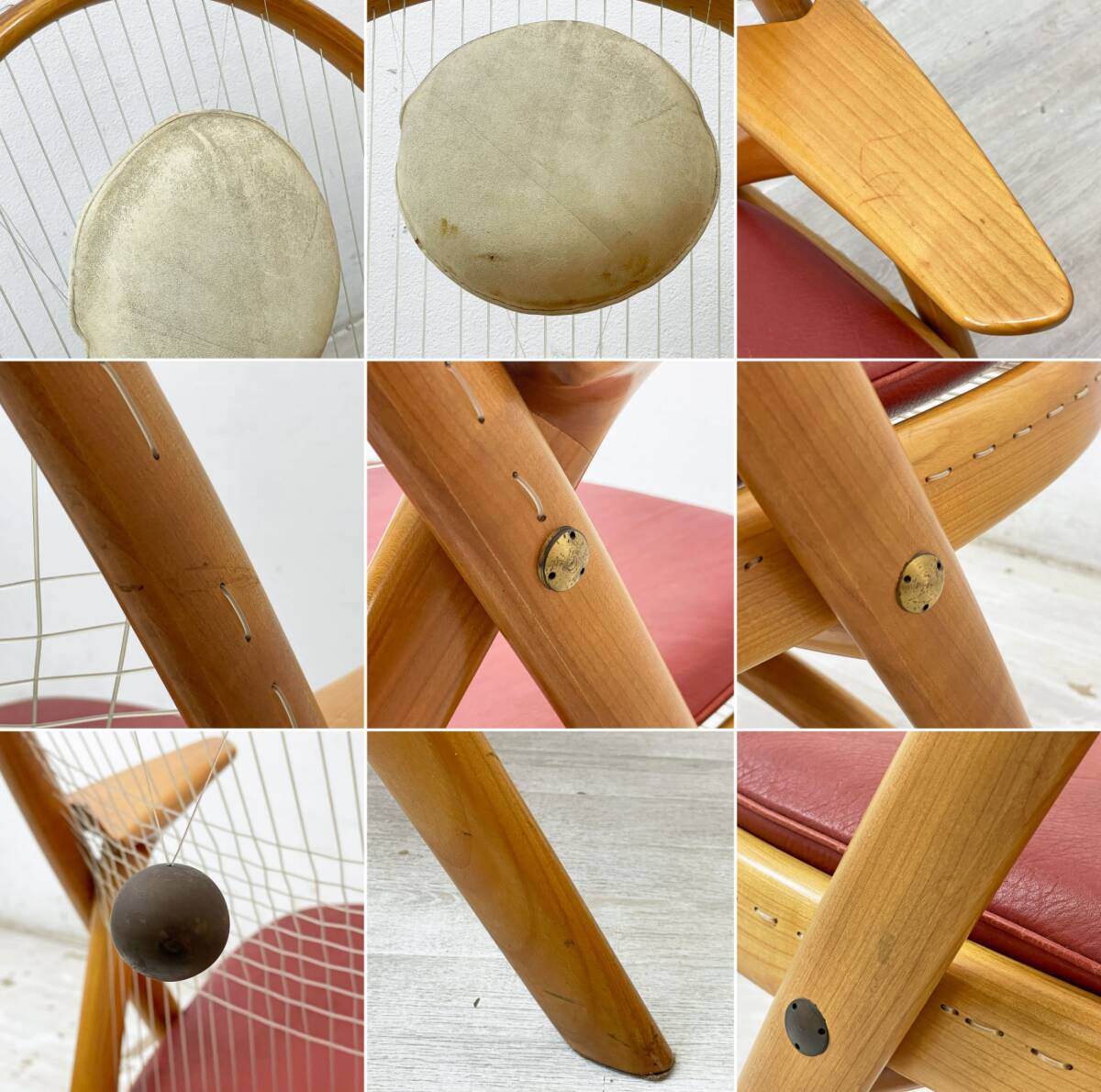 | コメント | デンマークの家具デザイナー”ヘルゲ・ヴェスターガード・イェンセン Helge Vestergaard Jensen”による「ラケットチェア Racket chair」。 製造を手掛けたのは北欧デンマークの名工”ニールス・ロス・アナセン Niels Roth Andersen”。 彼のプロダクトは生産数が限られているため、市場にも滅多に出回らない非常に希少な逸品となります。 1955年、彼は新しい人工素材と天然素材の融合を示すため、椅子の背もたれにナイロン製の紐を取り付けました。 主材には優しく穏やかな飴色のチェリー材を採用。 アームやフレーム、脚部に施された美しい曲線的なシルエットはオブジェの様な佇まい。 背もたれと座面には、テニスのラケット等で使用されるナイロン製の紐が張られています。 ヘッドレストはナチュラル色のスエードで張られ、背面には真鍮製のボールが取り付けられています。 そのボールを上下することで、体型に合わせた調整が可能。 シートクッションは上品な深みのある赤いレザー張り。 ユニークでアイコニックなデザイン且つ、彼の職人技、細部へ妥協のないアプローチは、比類なきコレクターズアイテムとなっています。 ぜひこの椅子を、ご自宅の空間に迎え入れていただき、時を重ねるごとに深まるその魅力とともに、心豊かな時間をお過ごしください。 ※当ショップは、主にリサイクル品を取り扱っております。基本的にUSED品である事をご理解頂き、ご入札をご検討下さいませ。 |