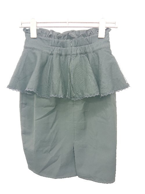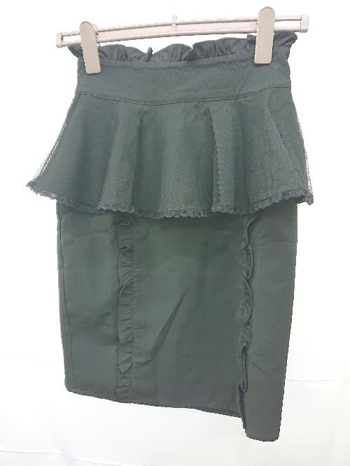 ◇ Θ Honey Cinnamon レイヤード チュール ペプラム 膝丈 タイト スカート サイズF ブラック レディース E