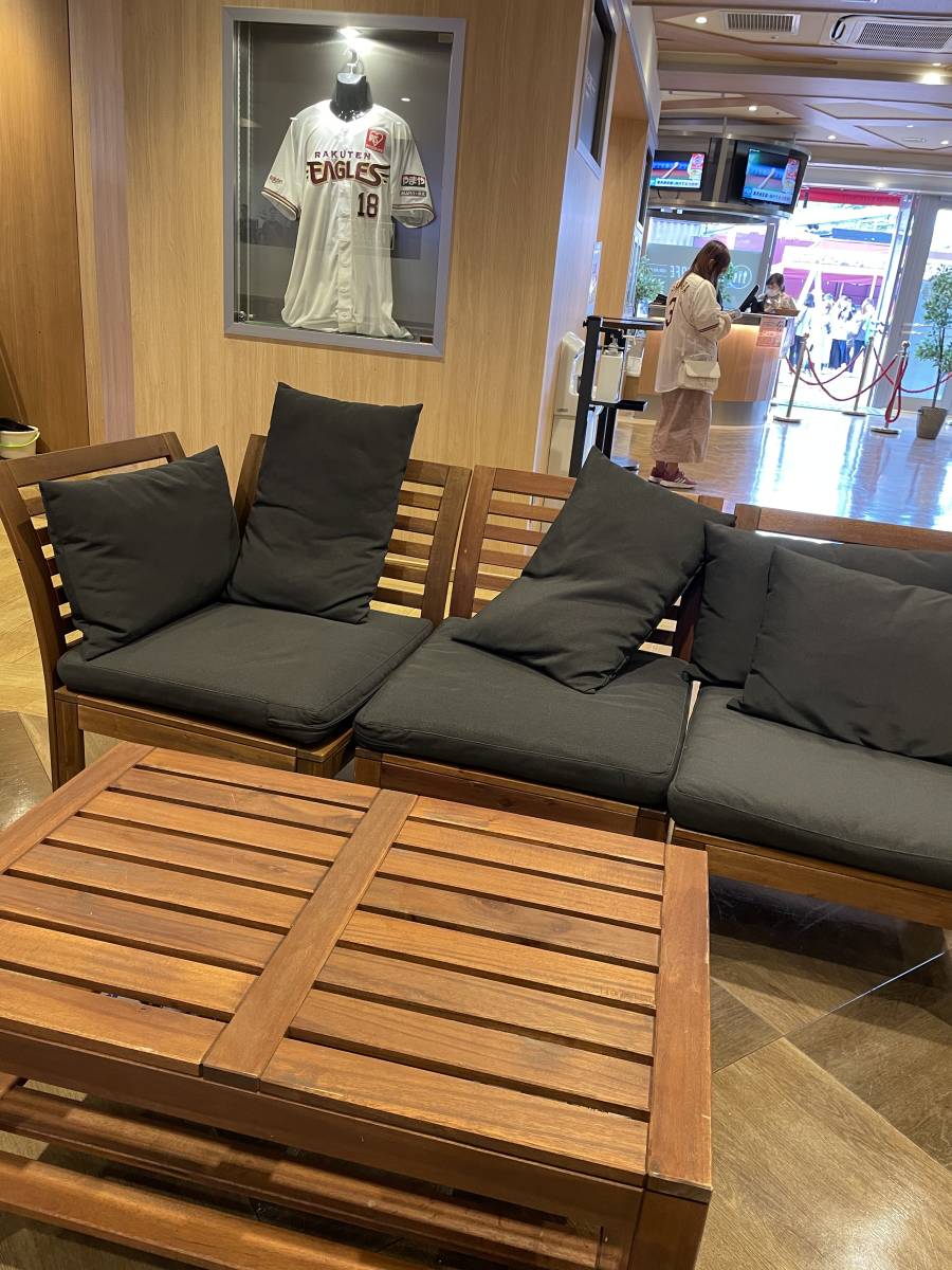 座席前は広めの通路になるので出入りが楽で足も伸ばせて開放感があり楽天選手が近いので観戦しやすいです。