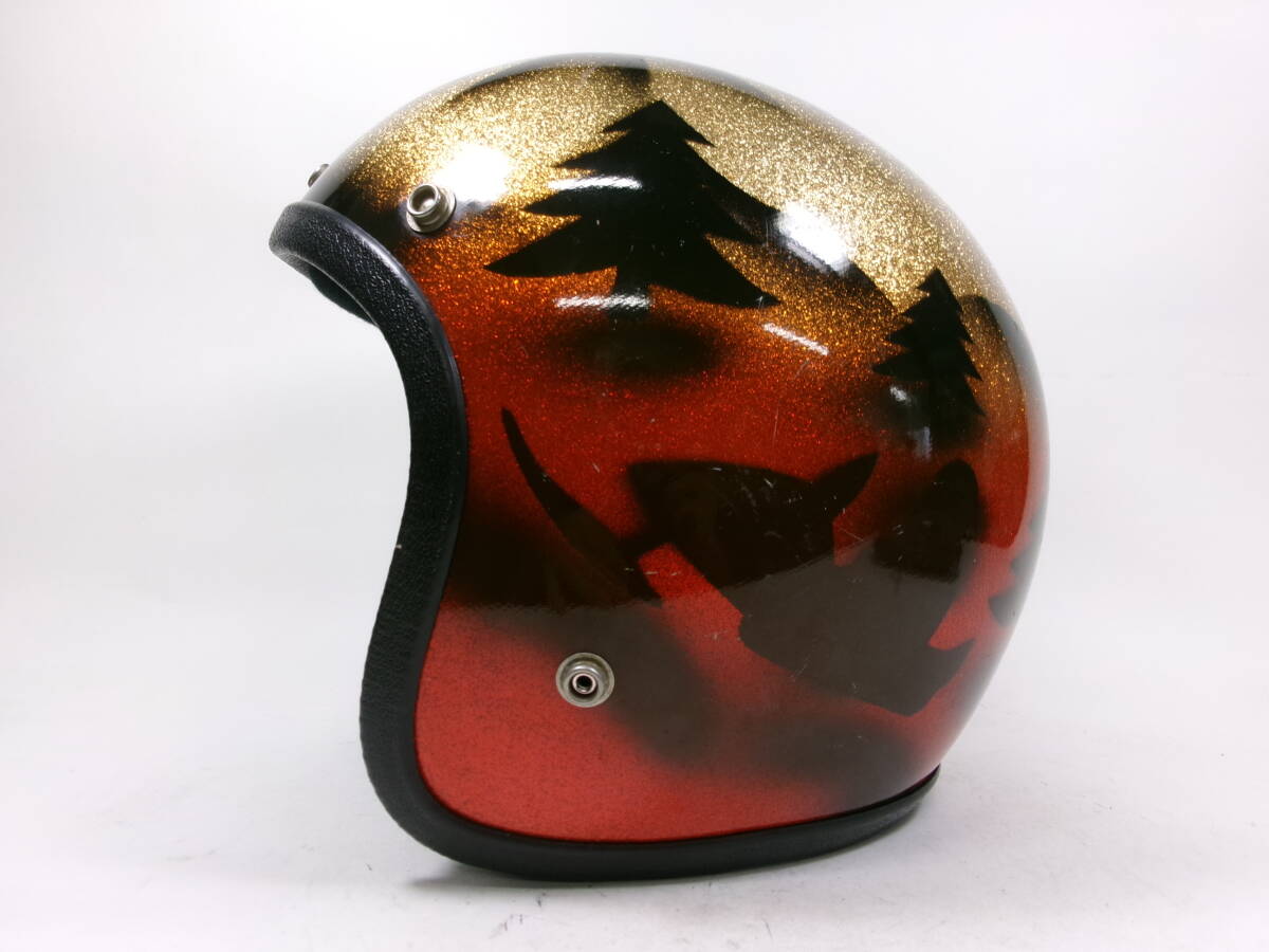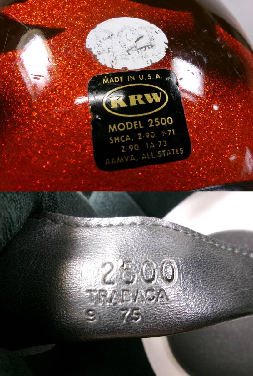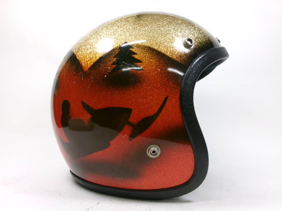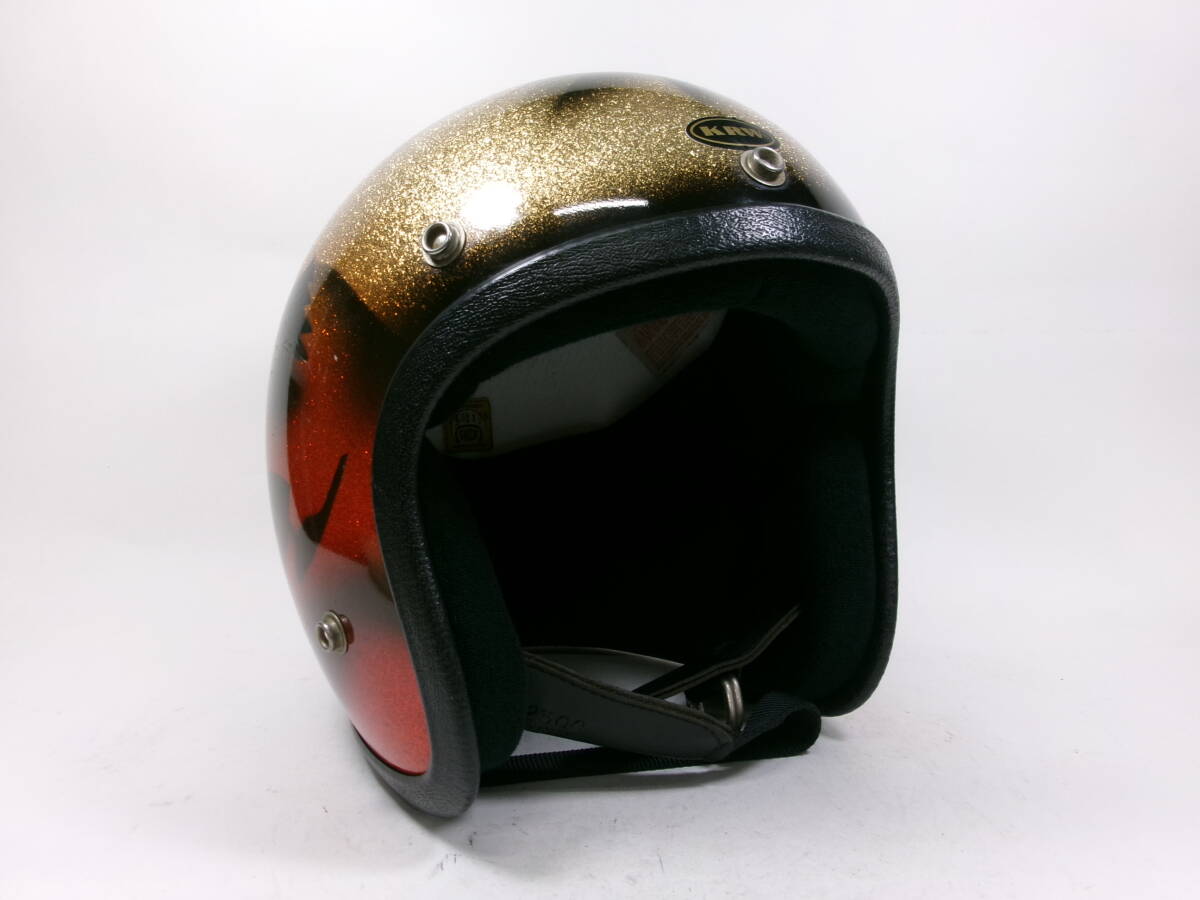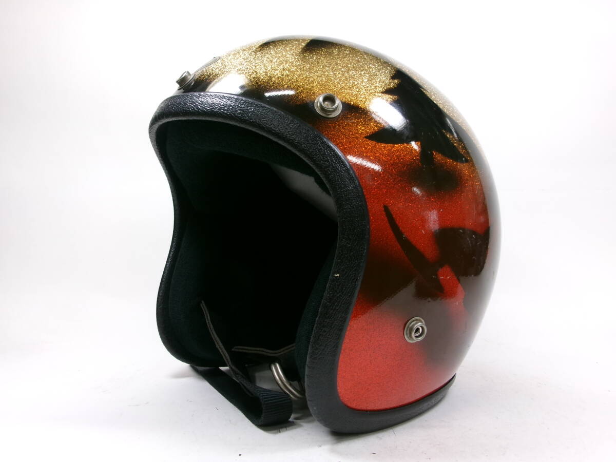 ■外装状態: 傷はありますが、全体的に艶もあり状態良好です。 ■内装状態: 新しい生地&スポンジでリペア済みなのですぐに使用可能です。 ■サイズ: 表記 M ですがサイズ調整済みなのでLサイズ (約59~60cm)位です。 若干の誤差はご了承下さい。 ■コメント: 70年代 KRW 2500 ジェットヘルメットです。 500TX(Mシェル)との比較画像もご参照ください。内装は加工済みなので目深く被れシルエットも抜群です。 オリペン、デカール類もオリジナルです。 お好きな方はこの機会に是非! ※装飾用です。公道での使用はお控えください。 |