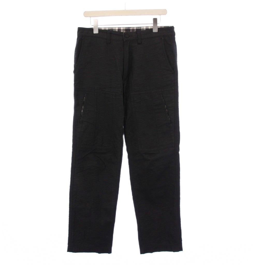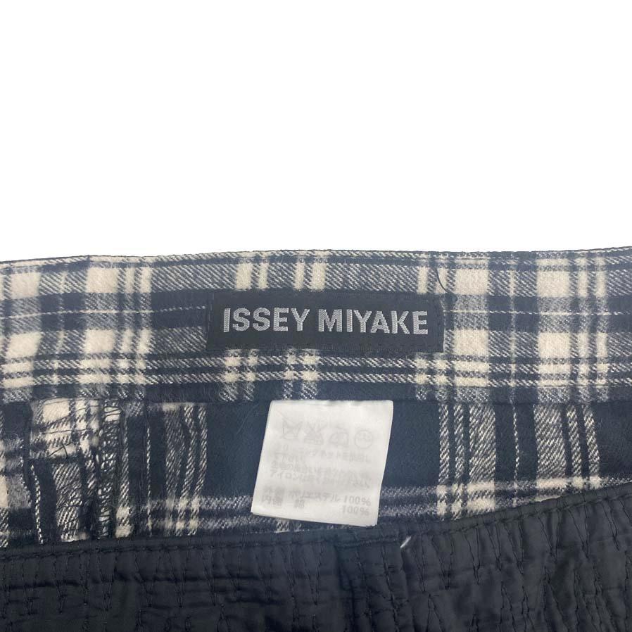 イッセイミヤケ ISSEY MIYAKE ストレートパンツ 刺繍 チェック切替 2 ブラック ME13FF115 /KH メンズ