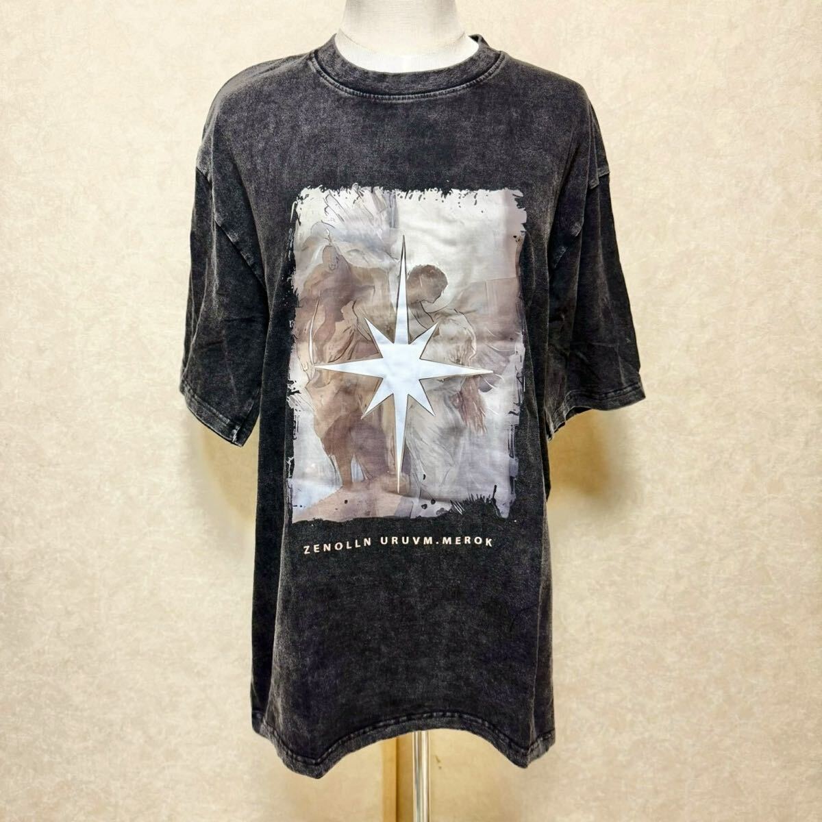 ストリート感漂うヴィンテージ加工のブラックTシャツ