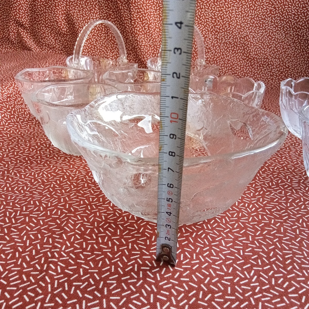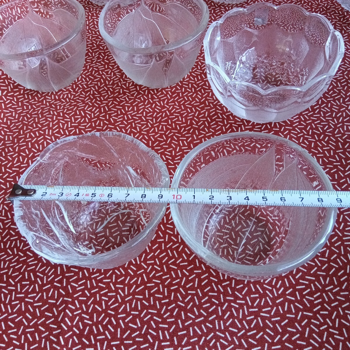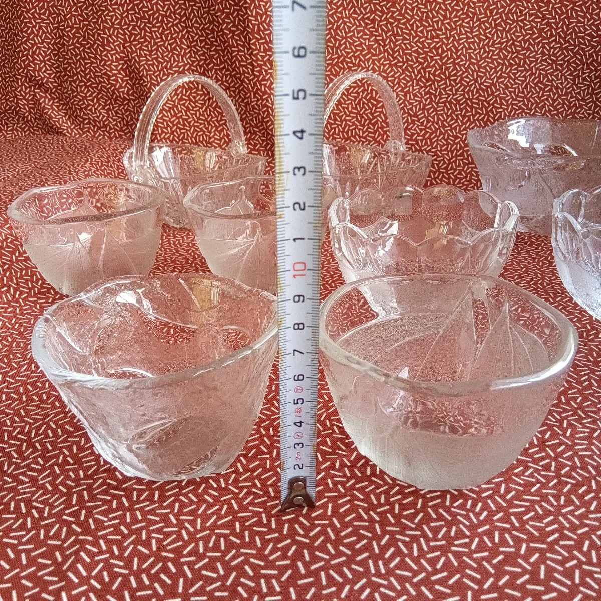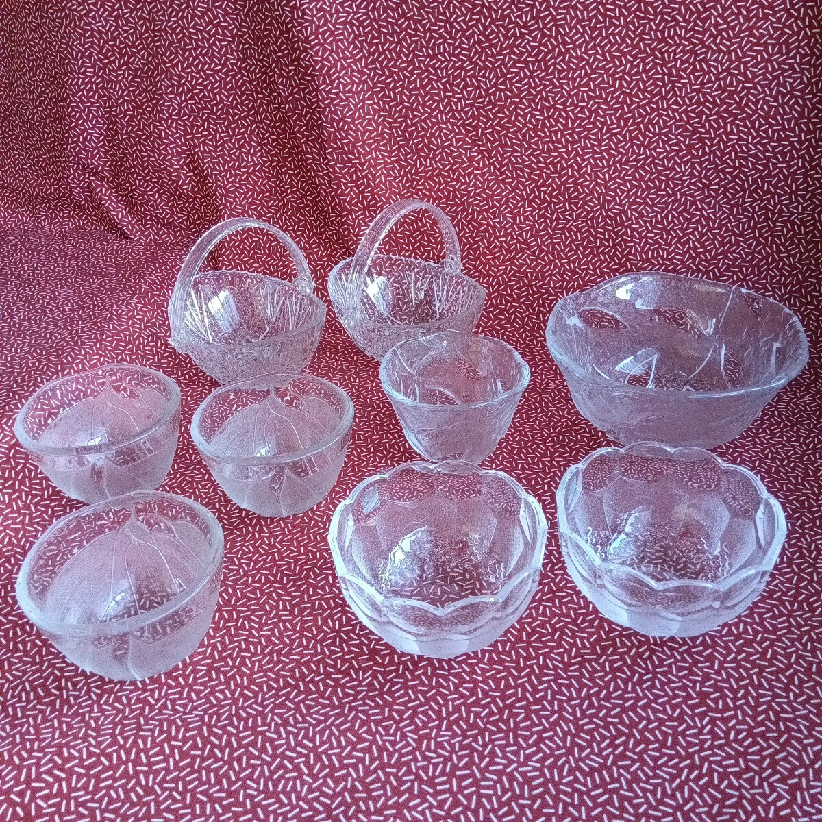 中古☆ ガラス 小鉢 ボウル 食器 すりガラス ぶどう バスケット 葉 蕎麦猪口 アンティーク 昭和 レトロ KAGAMI