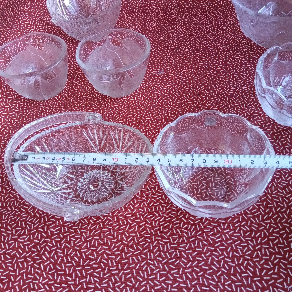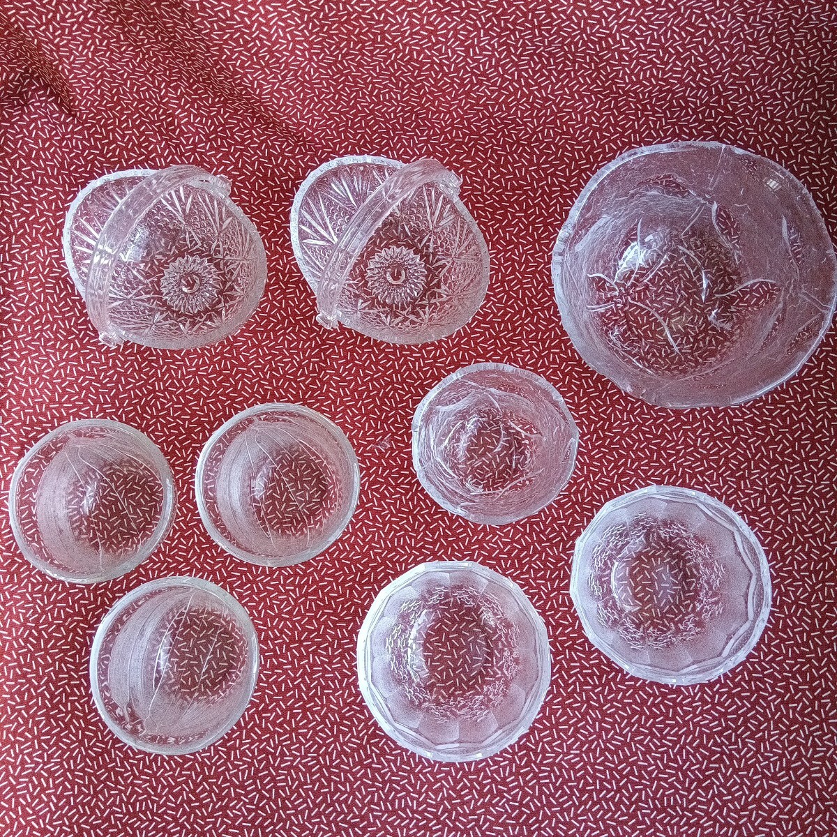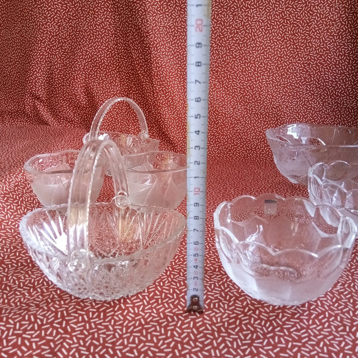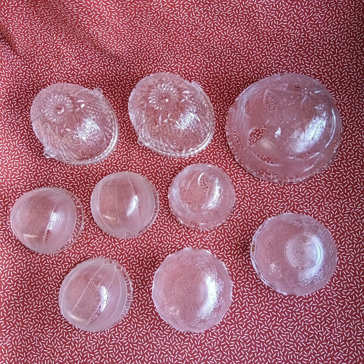 中古☆ ガラス 小鉢 ボウル 食器 すりガラス ぶどう バスケット 葉 蕎麦猪口 アンティーク 昭和 レトロ KAGAMI