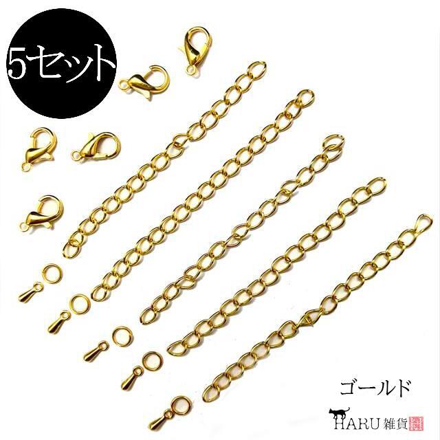 V-035 アジャスター カニカン ゴールド 各5個セット 金 チェーン つゆ玉 延長 金具 ピアス イヤリング ネックレス ペンダント HARU雑貨wn