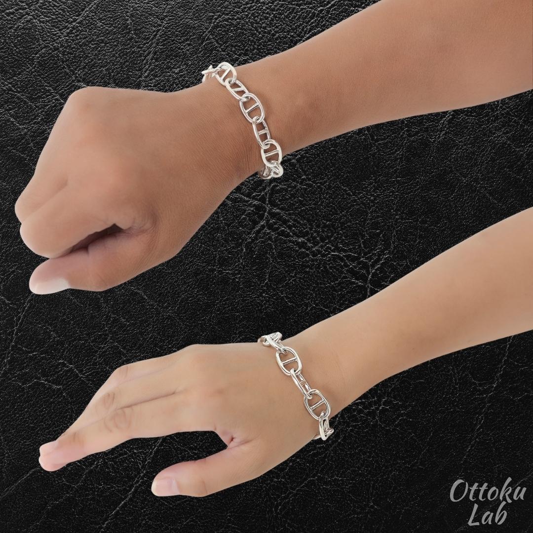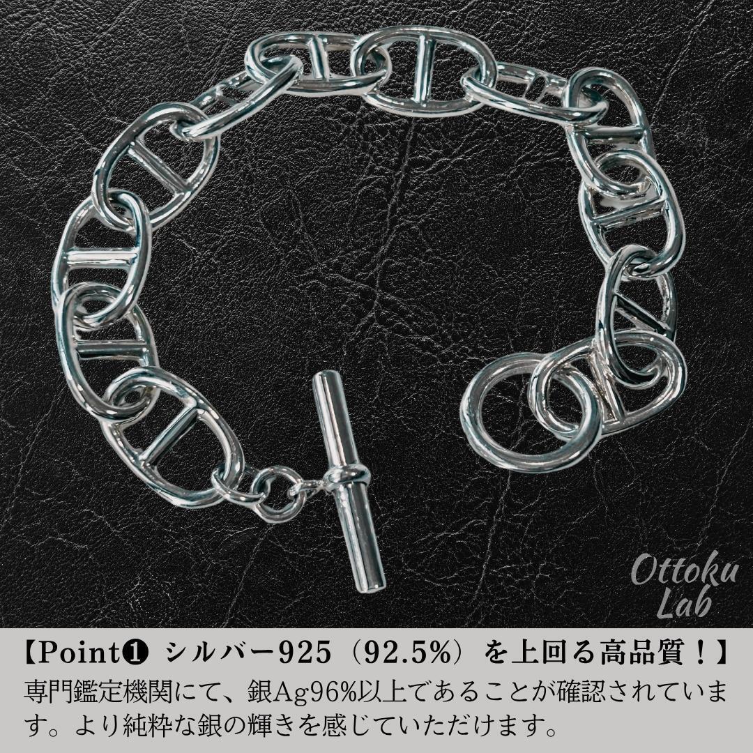 こちらのブレスレットは、都内の専門鑑定機関にて分析検査を行いました。その結果、銀(Ag)96%以上/銅(Cu)4%未満を含む組成であることが確認されています。