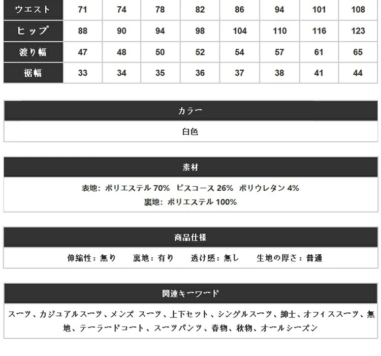 一つボタン メンズ スーツ 白色 スリム スーツ ビジネススーツ 通勤 紳士服 結婚式 成人式 テーラードジャケット Zty-4868 4XL