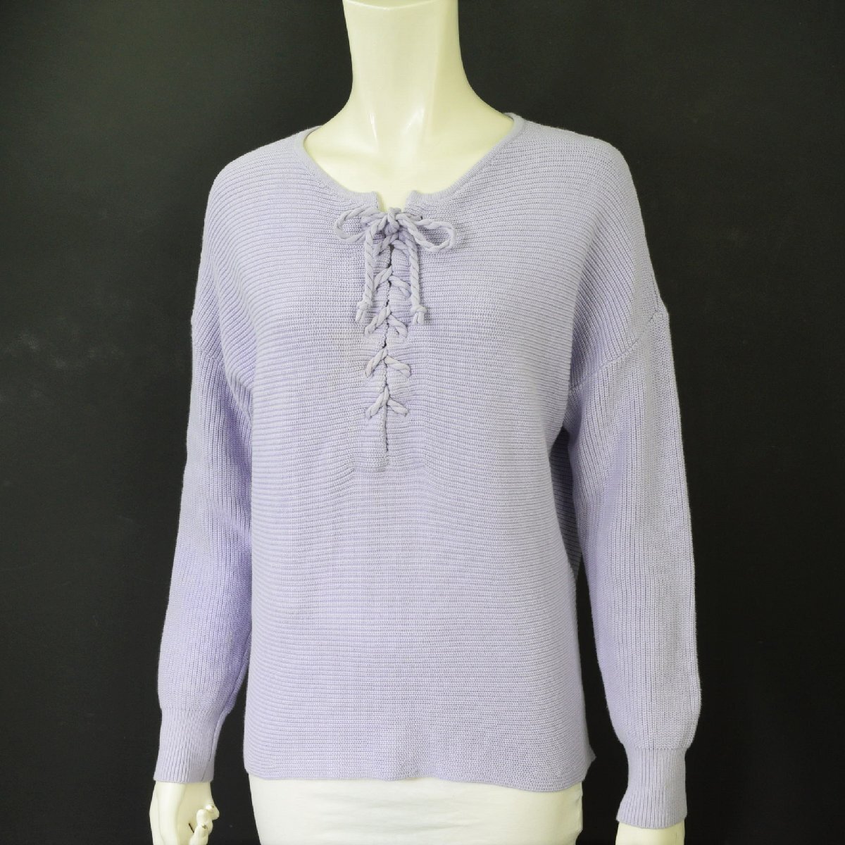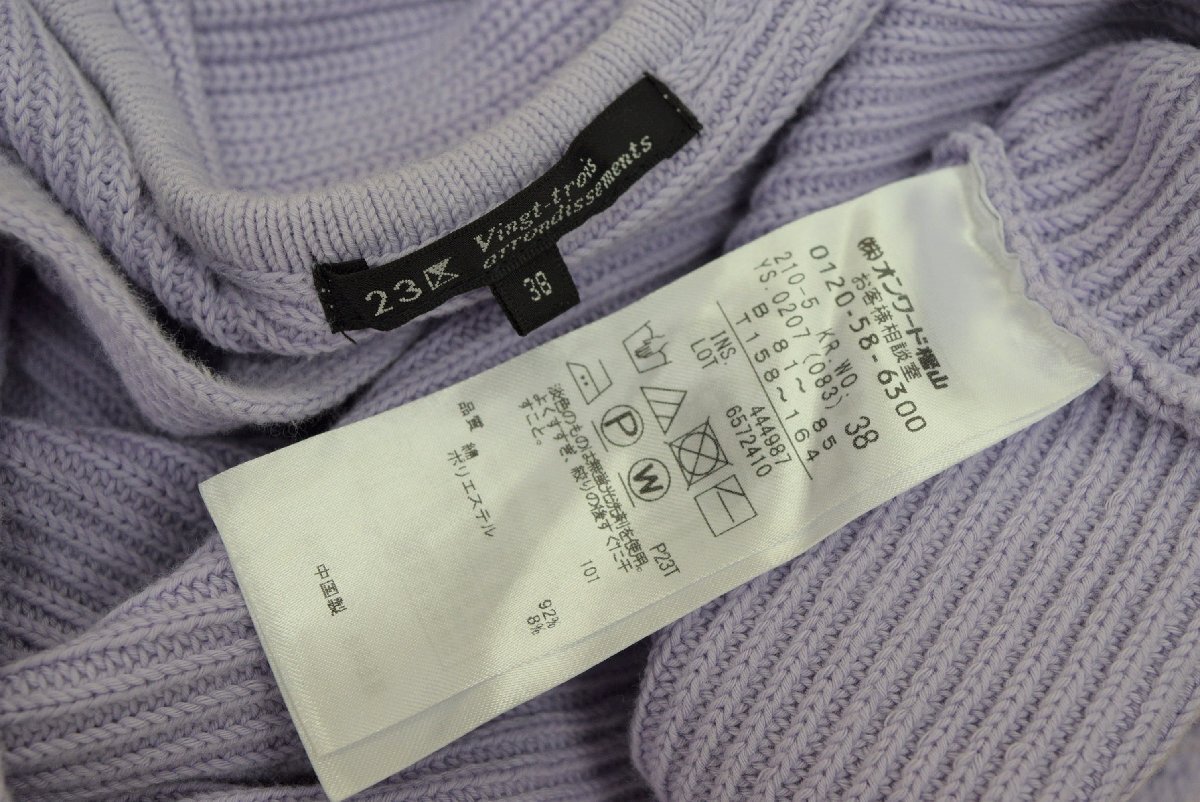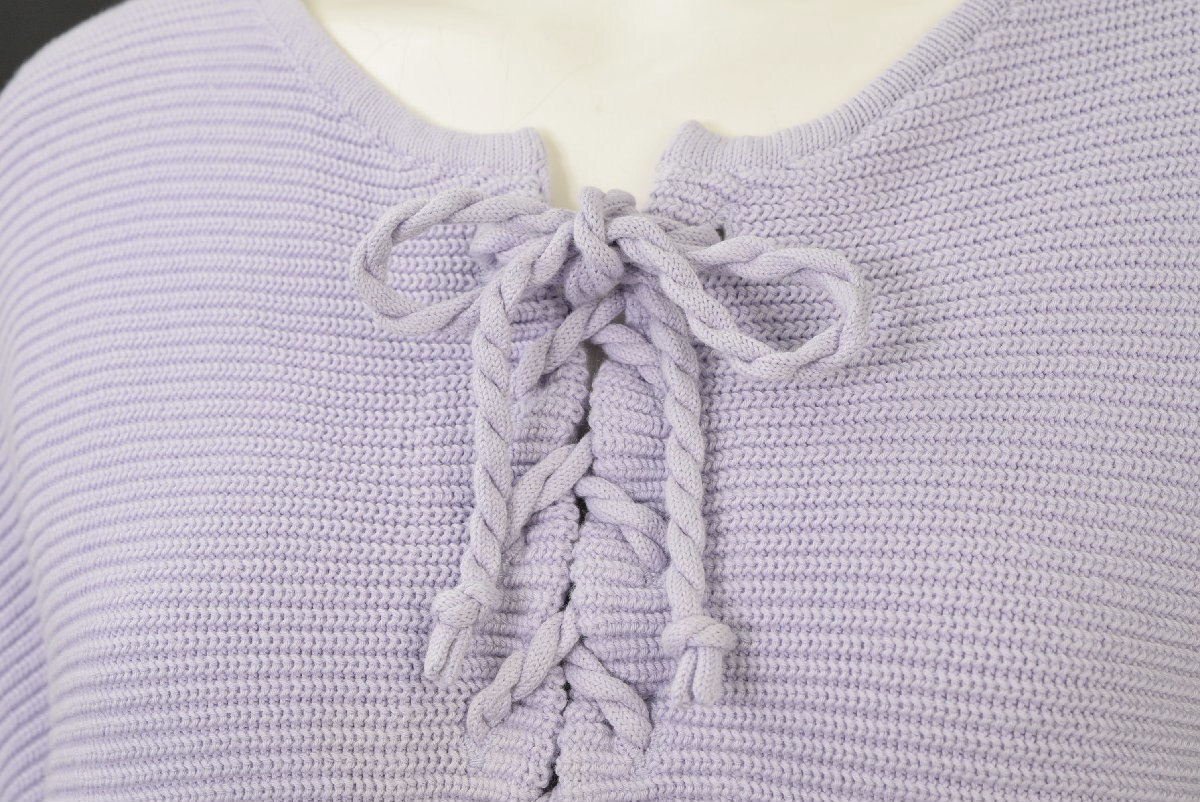 5000-EE00256★23区★優しいラベンダーカラー♪ レースアップ 上質コットンニット 38 紫系 綿 春秋 セーター