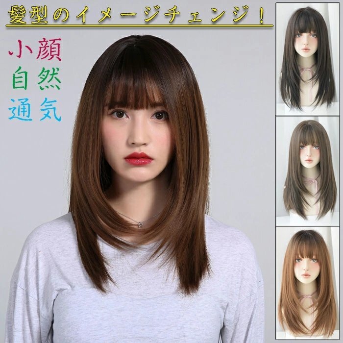 ウィッグ ロング フルウィッグ セミロング かつら レディース 女装 自然 wig ストレート ぱっつん前髪 カツラ 女性 ☆3色選択/1点