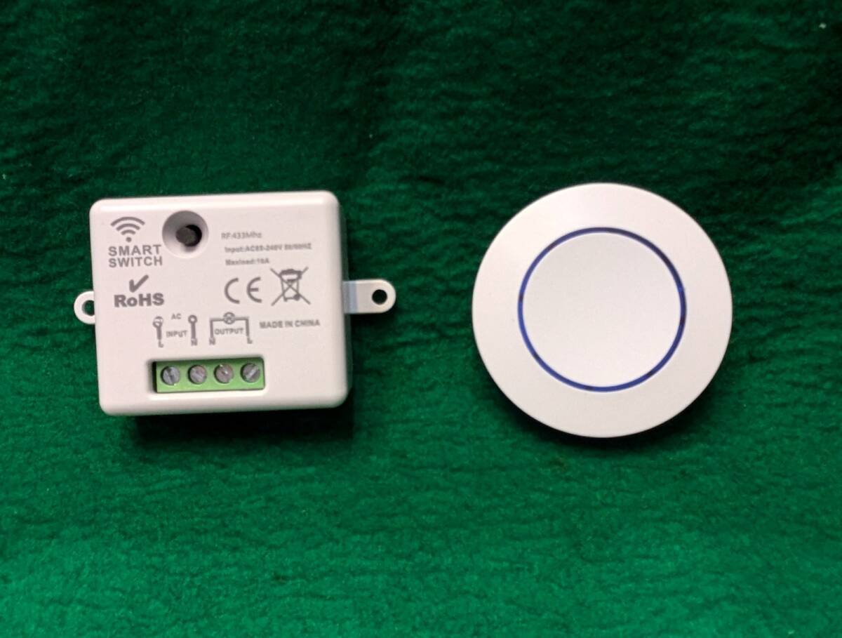 ワイヤレスリモコンスイッチ丸形送信機と受信機セットAC100Vで動作小型です照明などのリモコンに送料全国一律ゆうメール215円