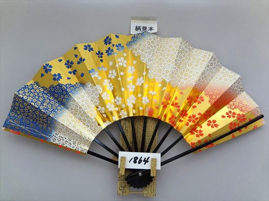 舞扇子 A1864 青・朱両妻ぼかし 金箔桜 【箱なし】