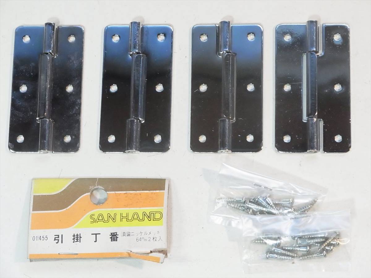 | 送料無料 引掛丁番 蝶番 ニッケルメッキ64㎜ 4枚 未使用品 | |
