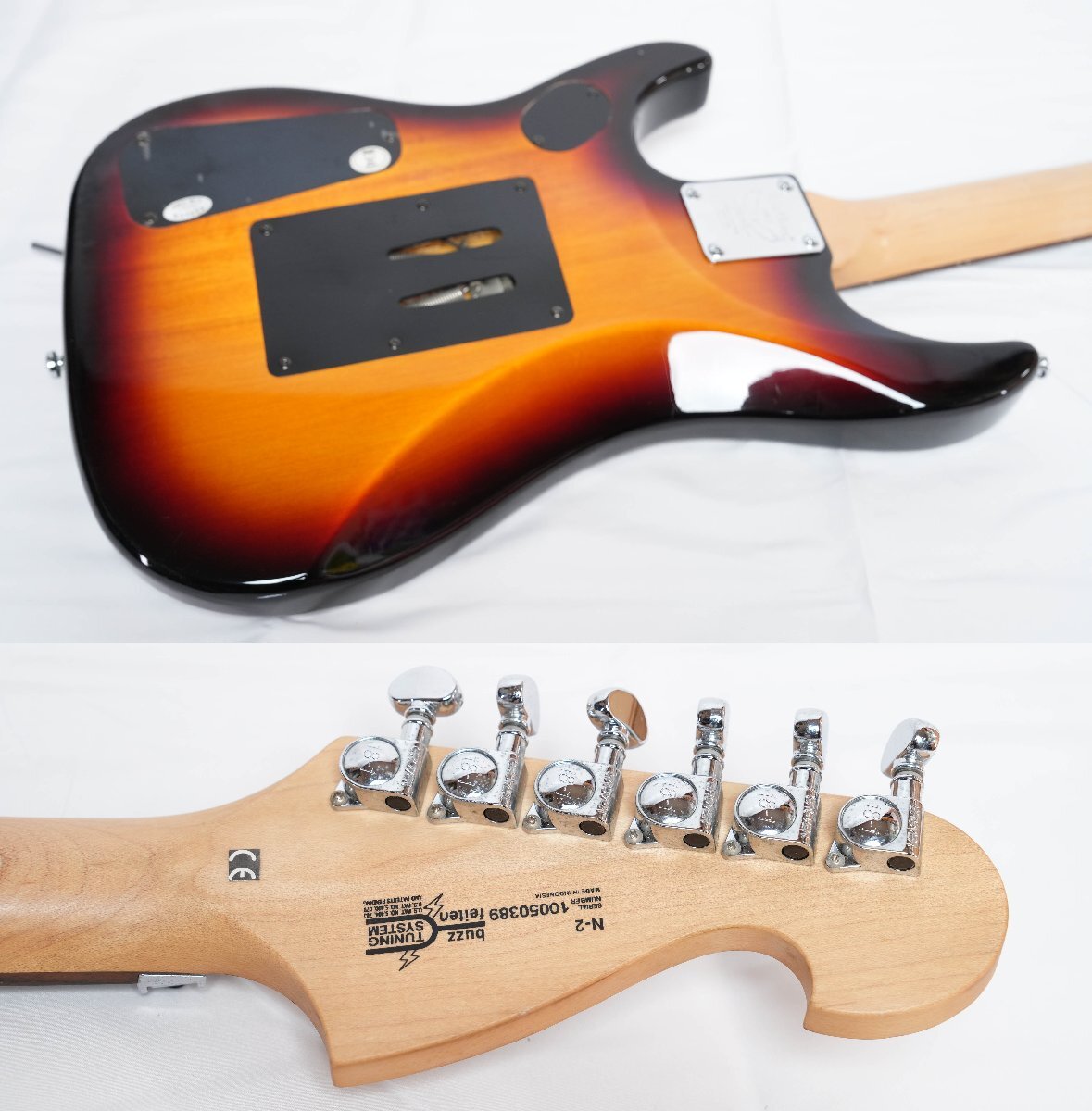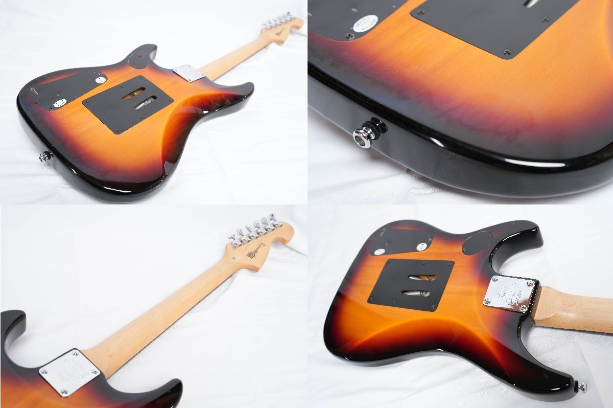ヌーノベッテンコートファンにも人気の高いシグネイチャーモデル N4の廉価版Washburn N-2 Sunburstです。 定番の粘り気のある太くサスティーンに優れたサウンドはヌーノファンお馴染みで非常に良い音です。 演奏性も高く、クリーンからハイゲインサウンドまで幅広いサウンドメイクに対応したロックギターです。 音の分離感も抜群で、バランスの取れた1本です。 中古市場でも中々見かけないグロスさんバーストカラーです。 ■■■以下わかる範囲でのスペックです。■■■ ボディ材 : Basswood ネック: Maple 指板 : Rosewood ピックアップ : オリジナルハムバッカーピックアップ+Bill Lawrence USA L-500 重量 : 約3.6Kg ナット幅 : 42.2mm シリアルナンバー :100503×× カラー : Sunburst フレットは主観ですが約8部山程度残量があります。 ■商品の状態■ *数カ所傷やベルトの擦り傷がありますが使用感は少なくコンディション良好です。 *ケースが欠品しています。 *ネックはほぼフラットの状態で反りは感じられません。 *動作確認済みです。 ■付属品■ アームバー | ||
