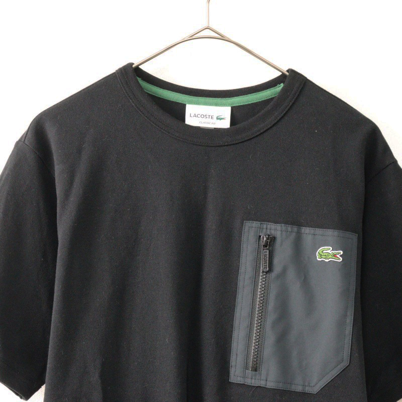 定価11000円 ラコステ LACOSTE TH138LJ アウトドアジップポケット鹿の子地半袖Tシャツ Classic Fit FR3(M)ブラック/黒【2400014550337】
