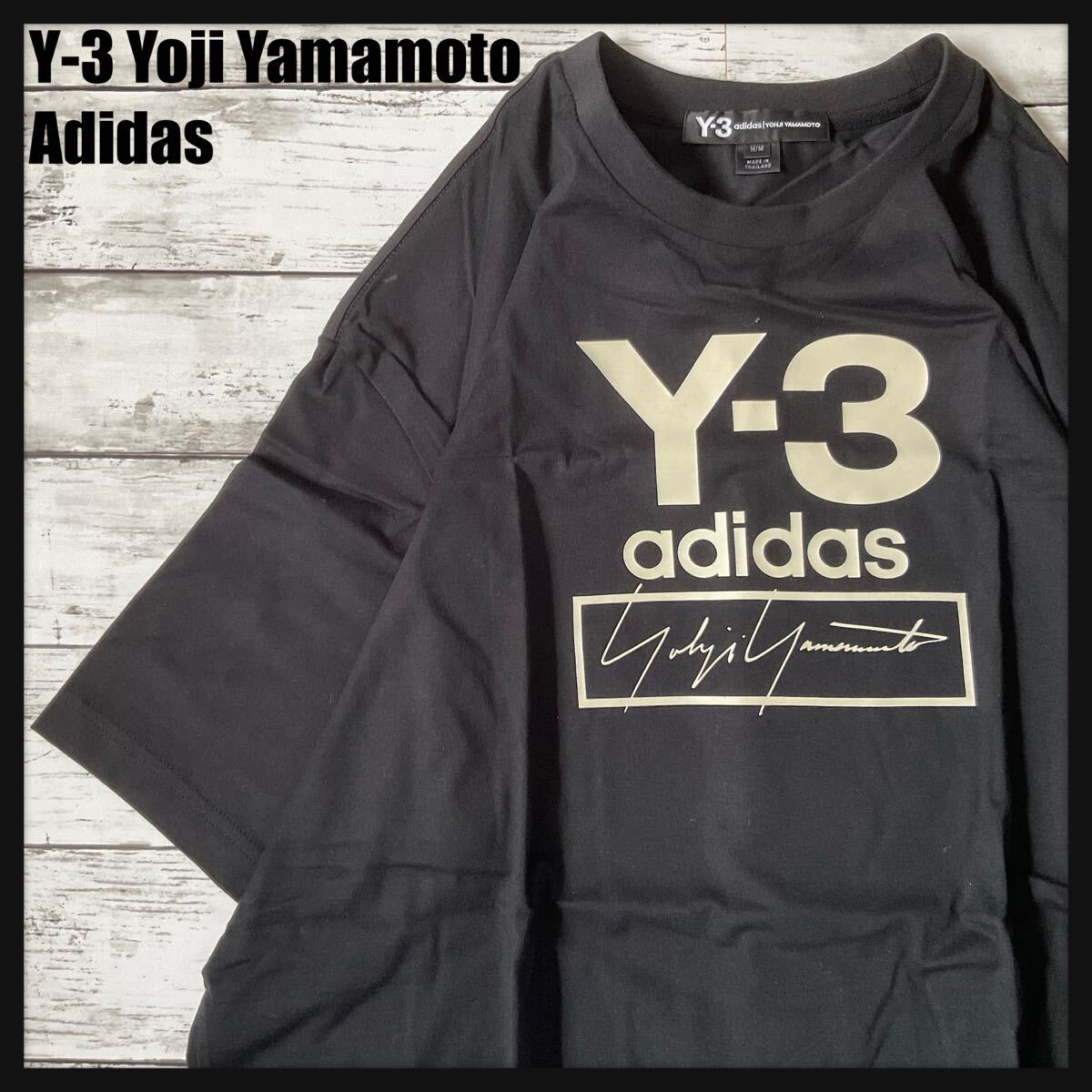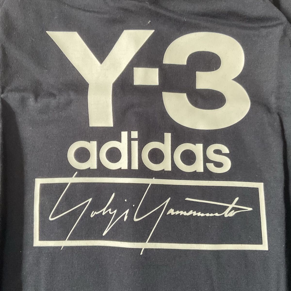フロントの大胆な「Y-3」ロゴとヨウジヤマモトのサインがアクセントになっています。