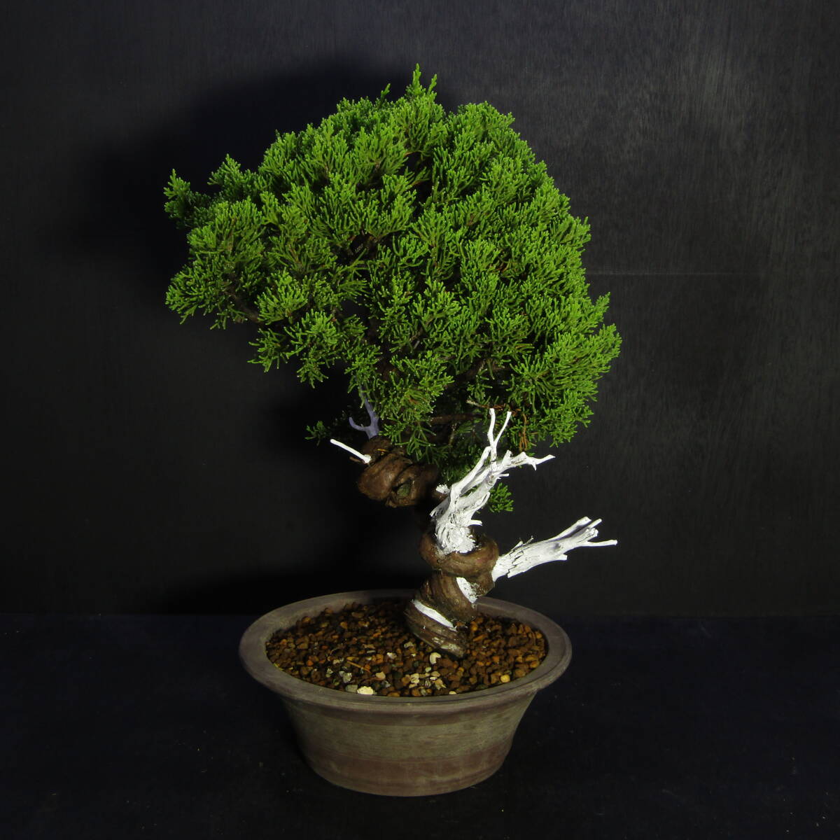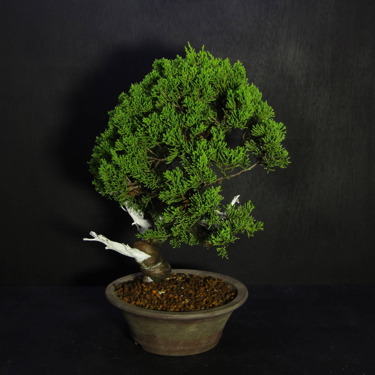 捻転を伴った幹模様にバランスの良い整った樹形は上品な景色を楽しませてくれ、このままでも趣あるを楽しむことのできる一品ですが盆栽素材としてもまだまだ将来性があり、これからさらに枝葉を増やし整え持ち込んでいくことでより一層美しい盆栽としてお楽しみいただけます。