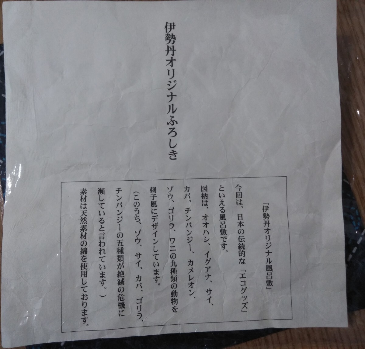 ご覧いただきありがとうございます。 伊勢丹オリジナル 刺し子風 動物柄 風呂敷 非売品
