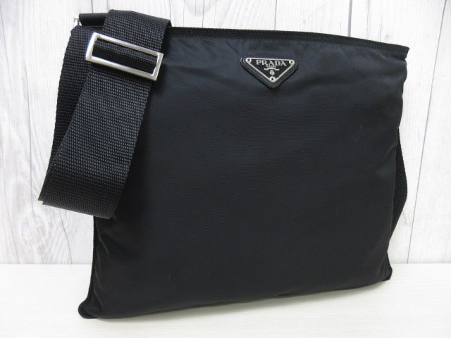 極美品 PRADA プラダ テスート ショルダーバッグ バッグ ナイロン×レザー×ナイロンキャンバス 黒 メンズ 88135Y | ||