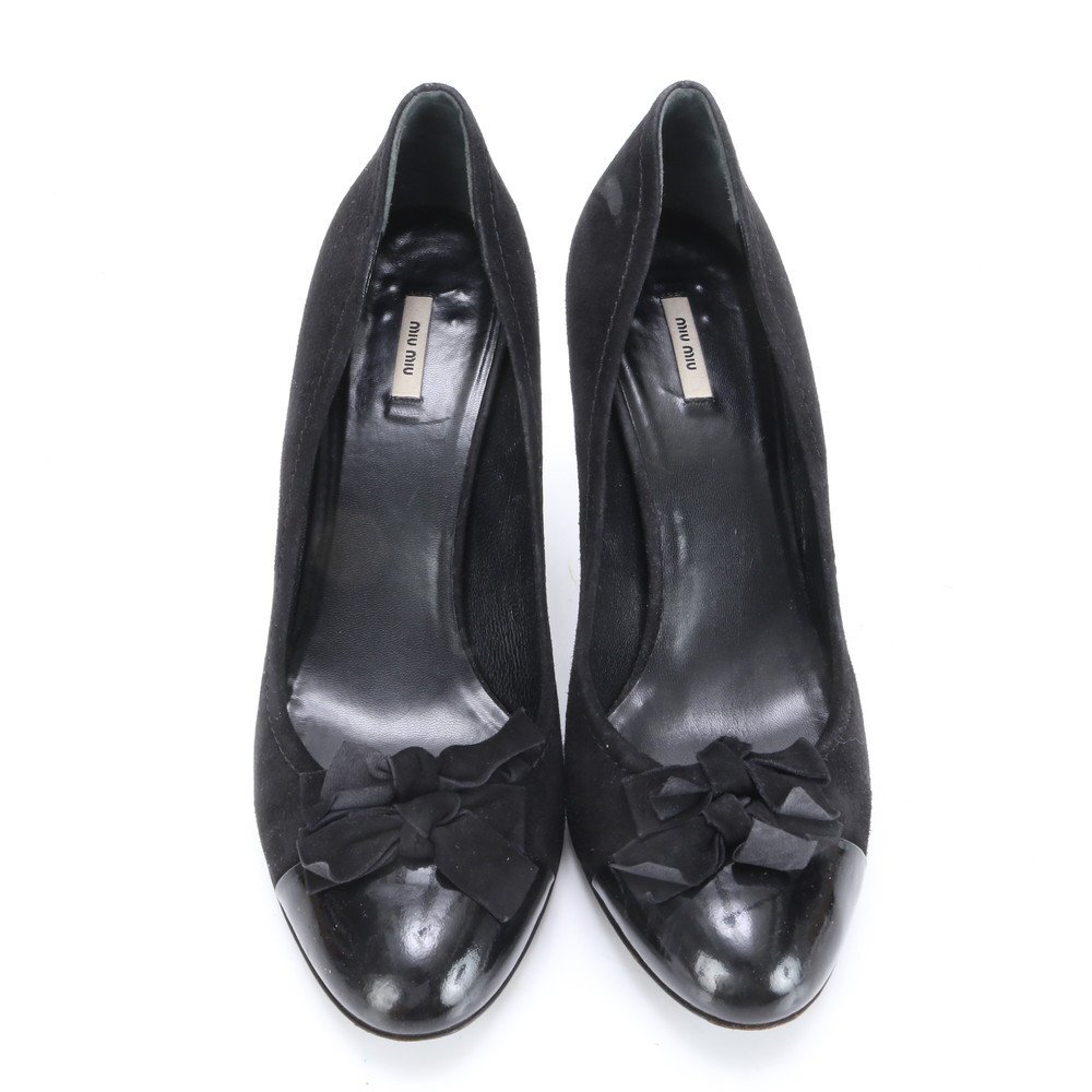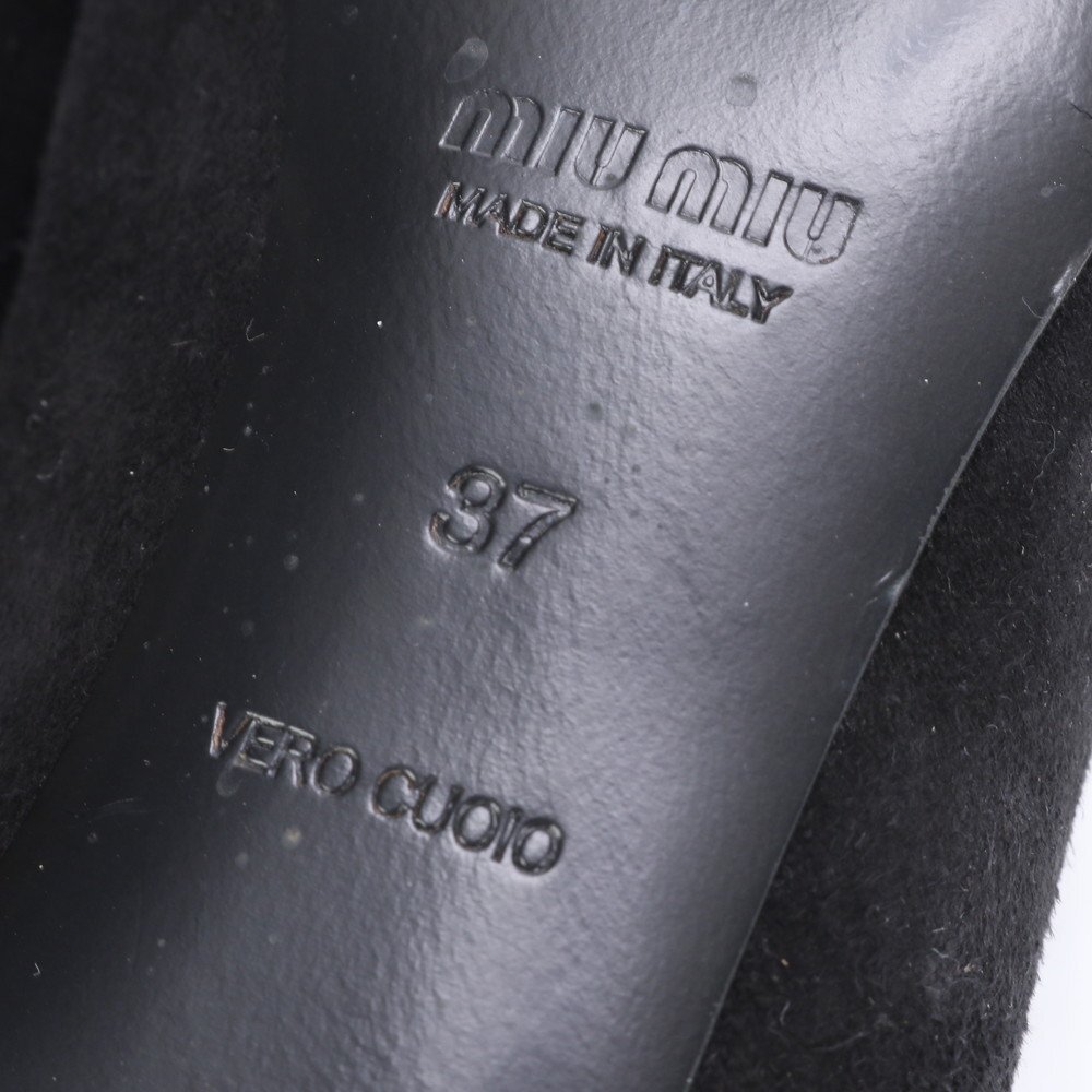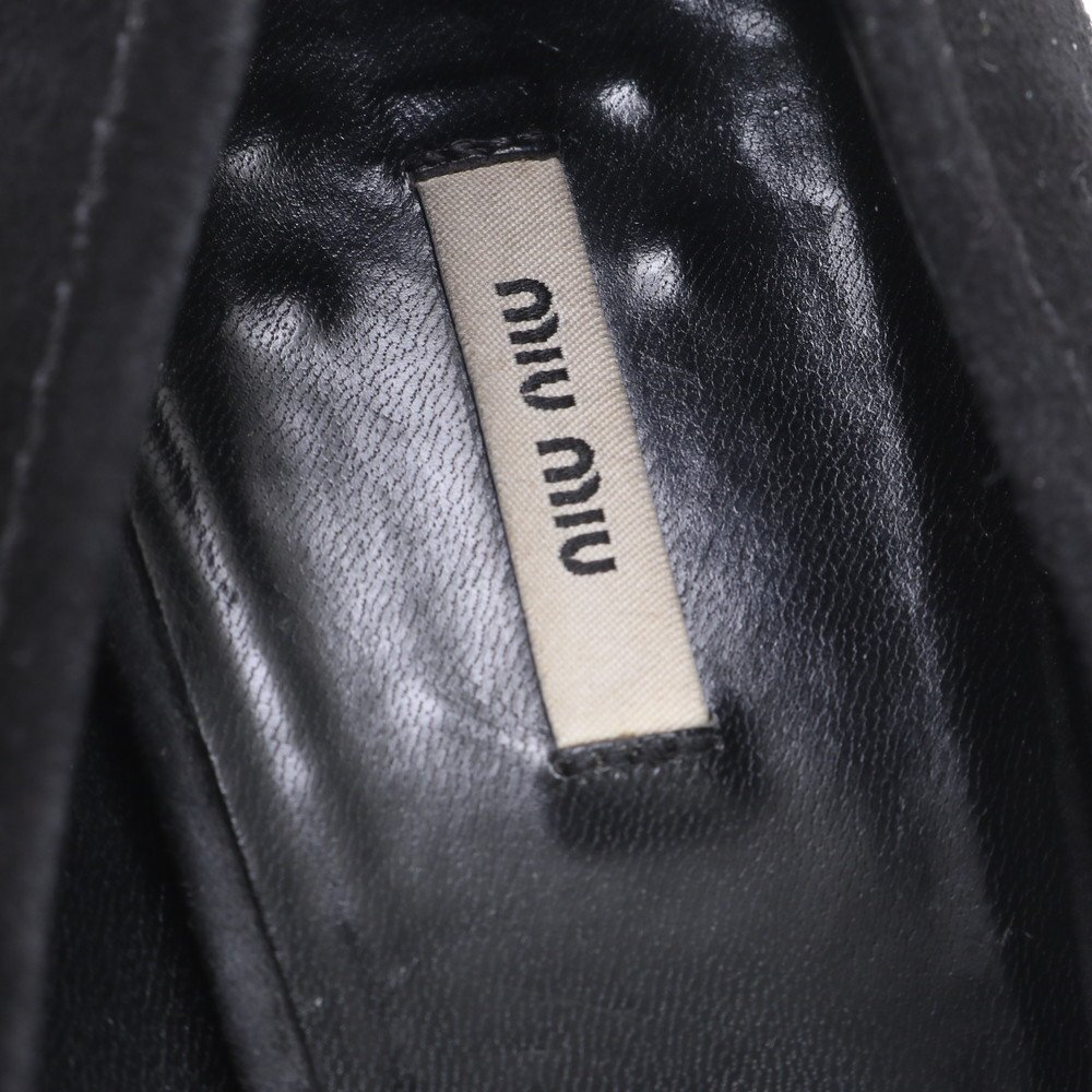 1円■ミュウミュウ■スエード リボン レザー パンプス 7 24cm 相当 ブラック 黒 ヒール 靴 シューズ ミュール レディース MMM BN13-3