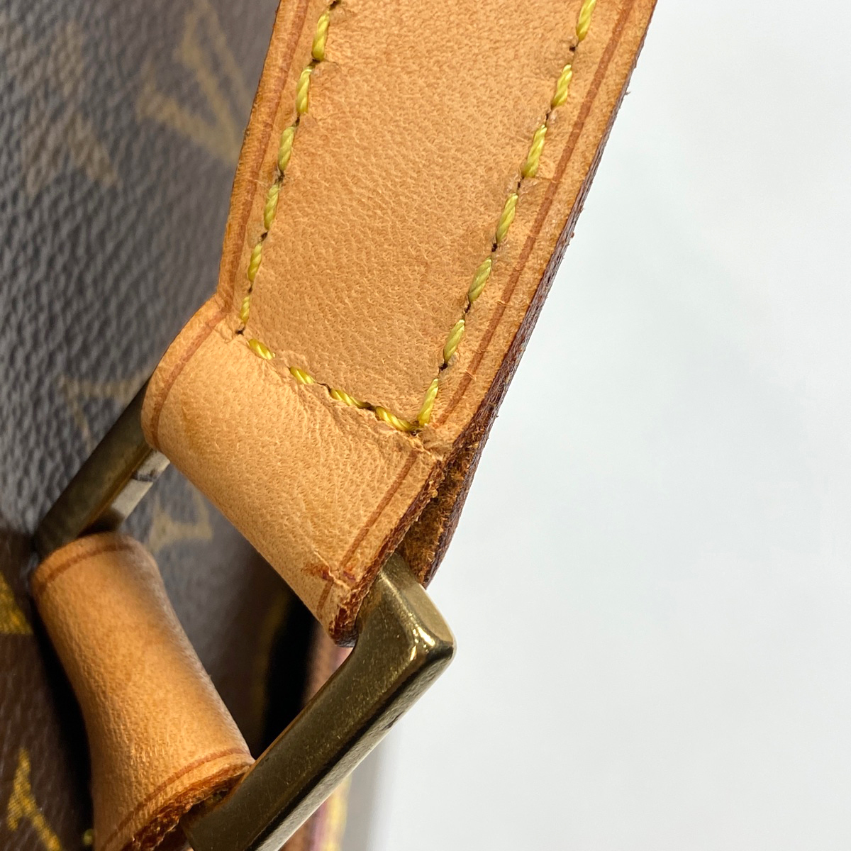 | 《全体》型崩れ、生活臭、スレ、キズ、シワ、汚れ 《内側》毛羽立ち 《ヌメ革》ヤケ、シミ 《ハンドル》へたれ、毛羽立ち 《金具》小キズ、くすみ 鍵欠品の為、パドロック開閉不可。 |