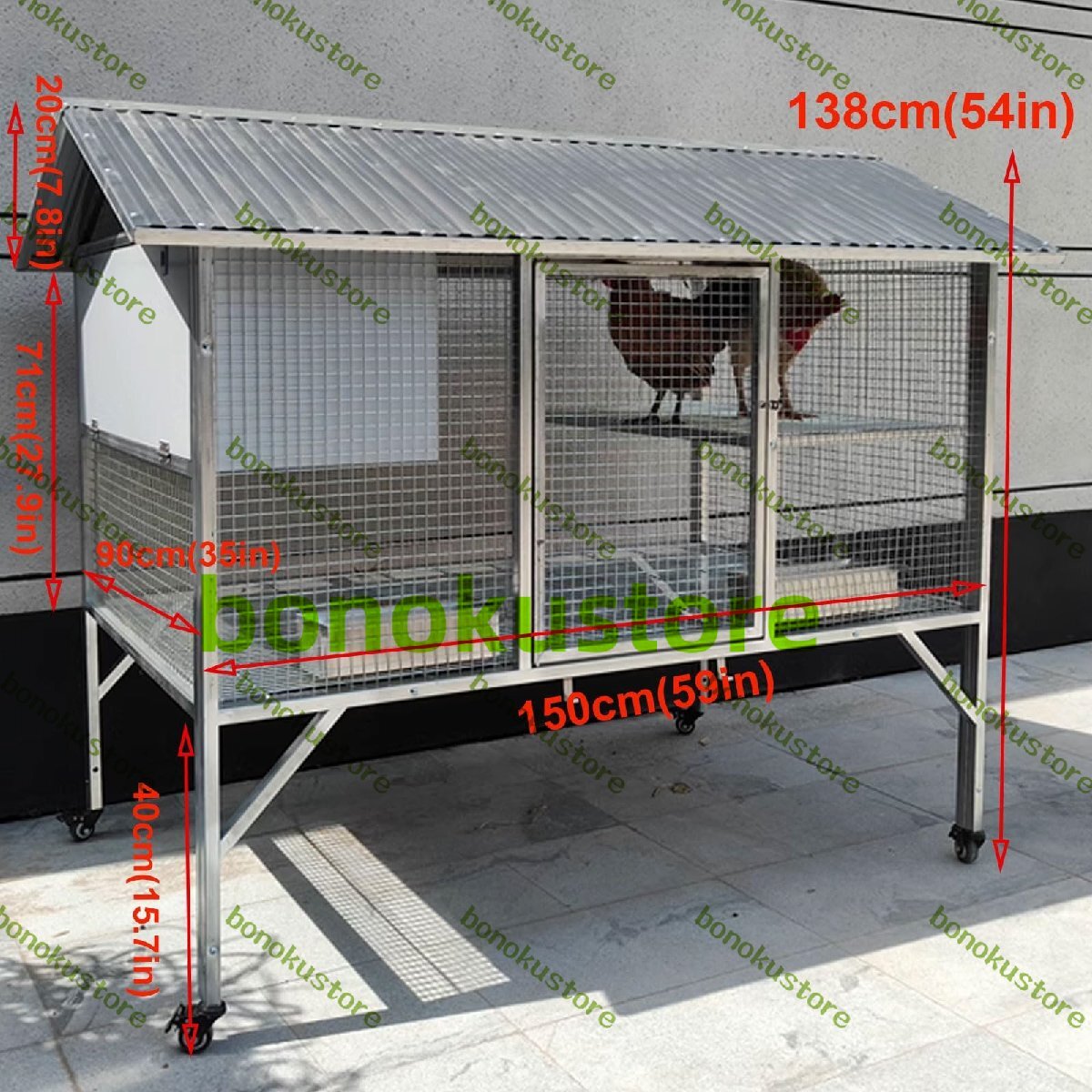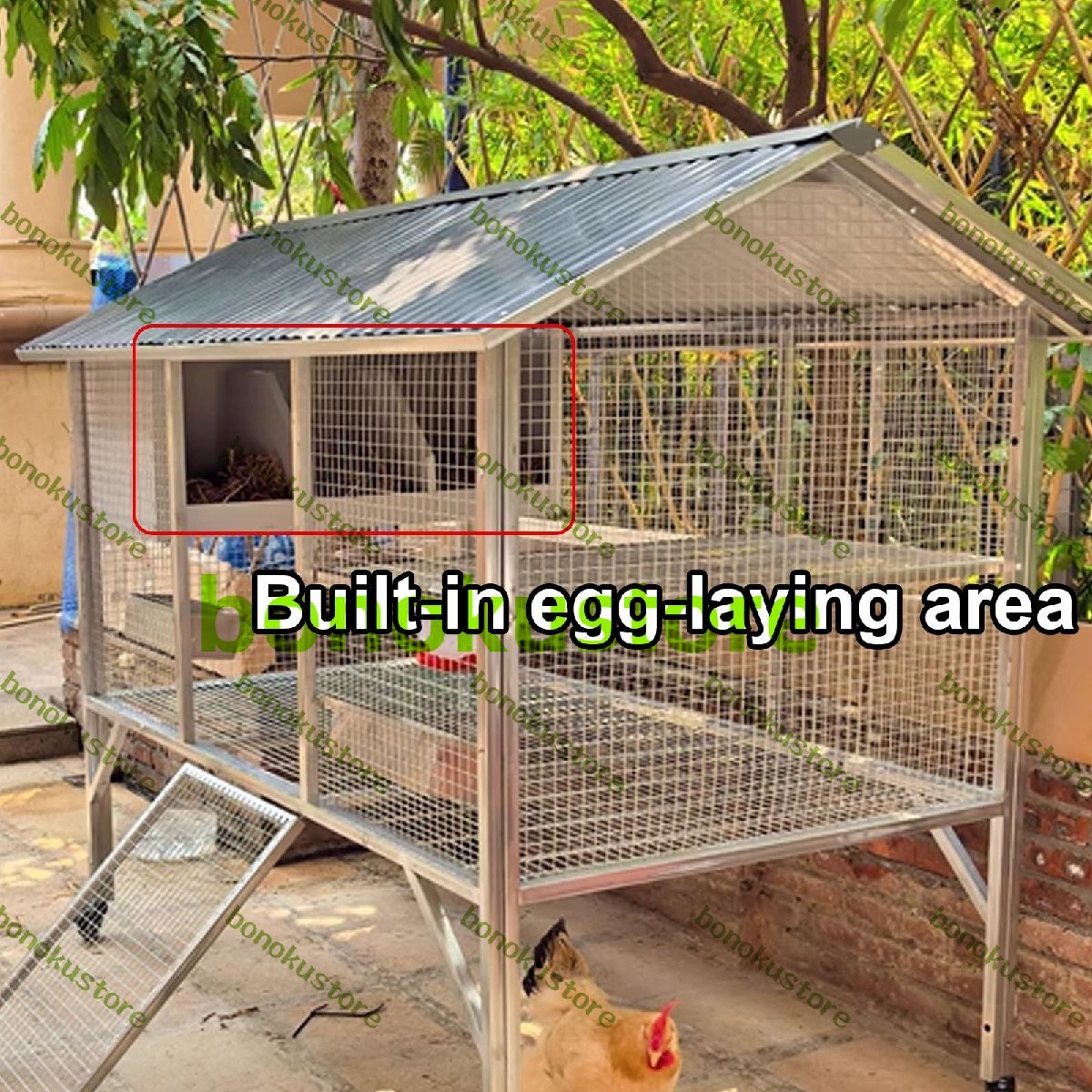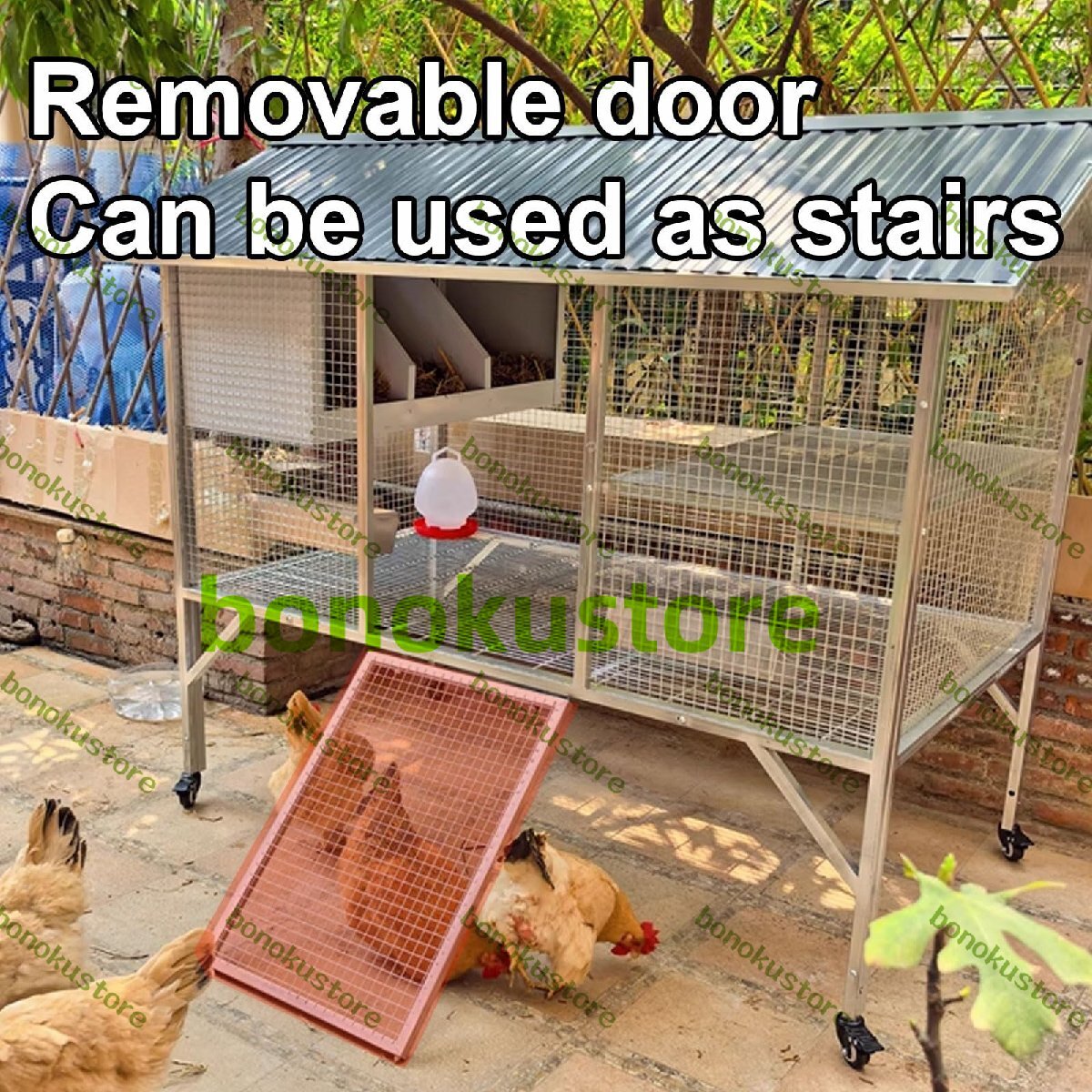 広々としたアクセス:取り外し可能な大きなドアは、給餌、掃除、メンテナンスの際に鶏に簡単にアクセスできます。また、大きなドアは鶏の出し入れも容易にします。