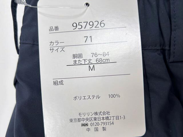 957926-71-5-8 ネイビー Mサイズ 股下68cm ひんやり 接触冷感 軽量イージーパンツ VULGARIS ウエスト楽々 ストレスフリー