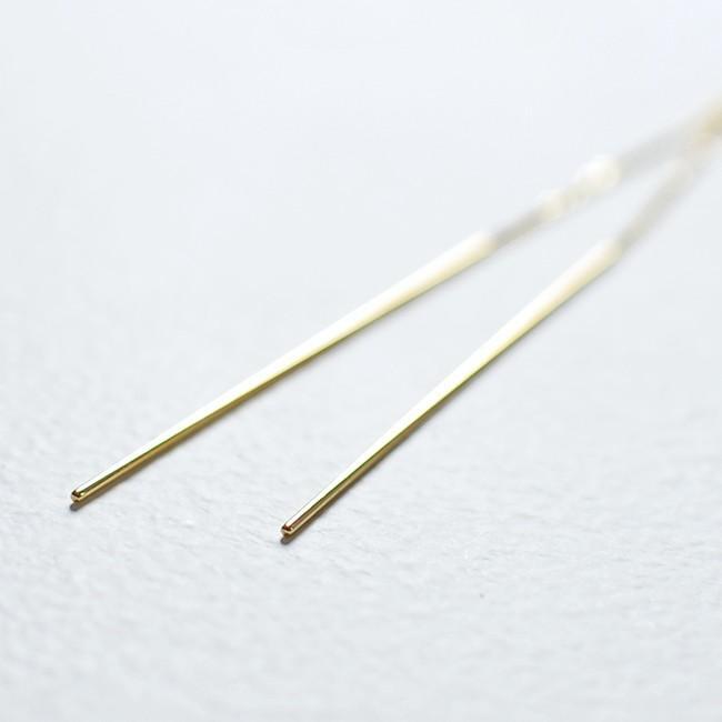 素材は高級感のあるK18YG、耳元で揺れるゴールドチェーンとスティックの優美な煌めき。MARIHAのベストセラー《 金の糸 》シリーズです。ゴールドチェーンで繋がった 長さの違う2本の華奢なスティックが、耳元でゆらゆらと優雅に揺れるピアス。