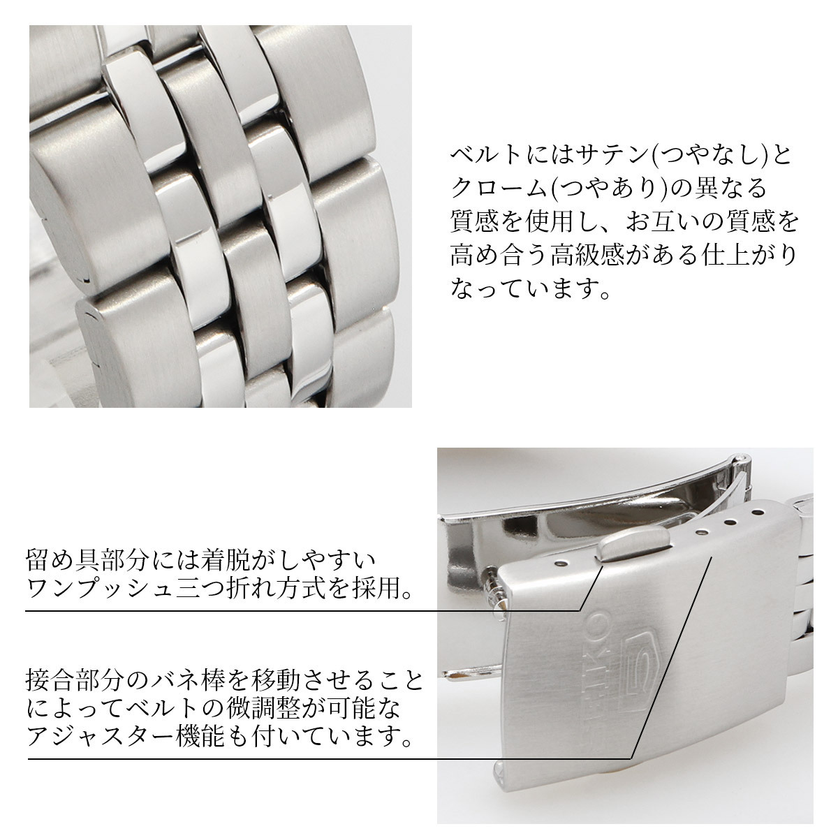 無料サービス | ●出荷前に腕周りをご指定頂ければ、無料でベルト調節致します。 ※メタルベルトの商品で、縮める場合のみ ※サイズが合わなかった場合の再調整はお受けできませんので何卒ご了承ください。 |