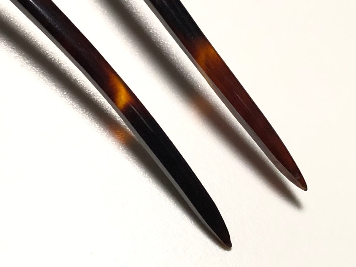 アンティークの本鼈甲を使用した、透かし唐草細工のデザイン扇簪です。鼈甲部分に欠けや虫食いはありません。