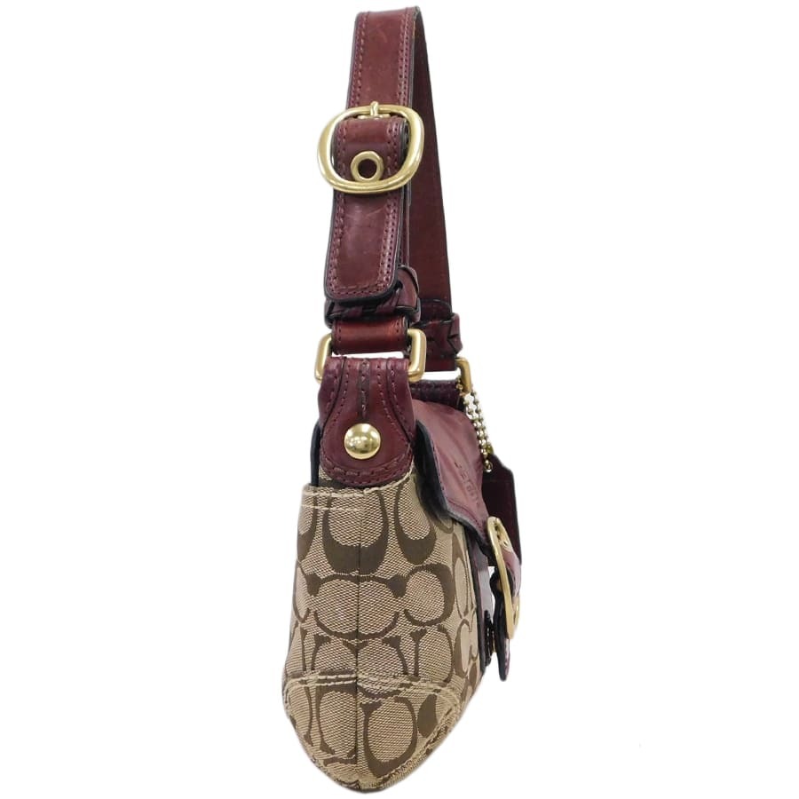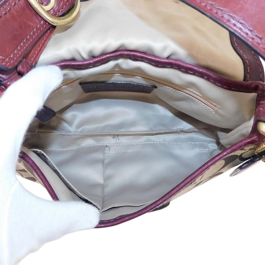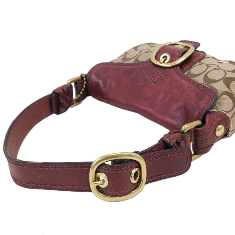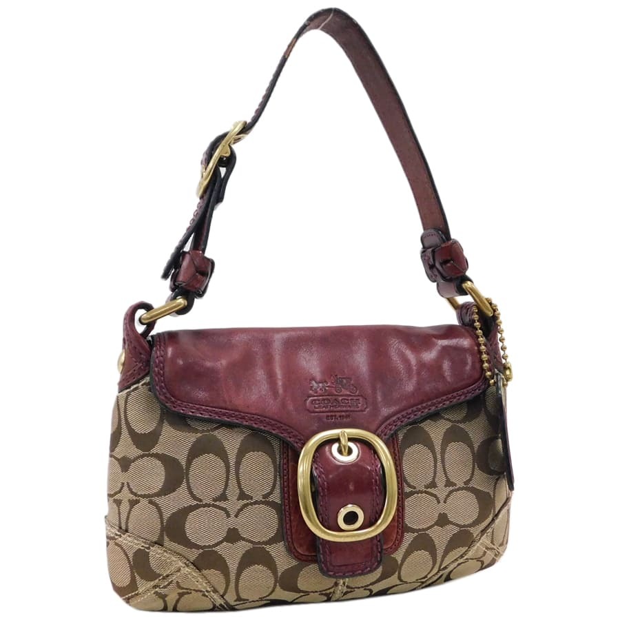 1円■ 美品/コーチ/ハンドバッグ/11441/ブラウン×レッド系/キャンバス×レザー/シグネチャー/COACH ■E.Bmi.tI-04[中古]