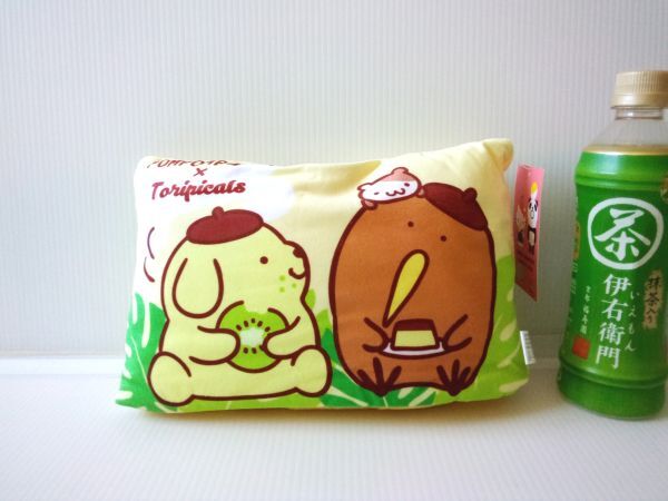 台湾 即決♪ 正規品!! サンリオ ポムポムプリン × トリピカルズ キウイ コラボ 2WAY 抱き枕 & ブランケット ♪