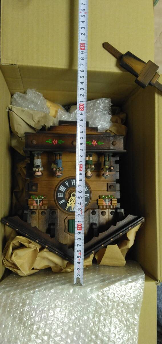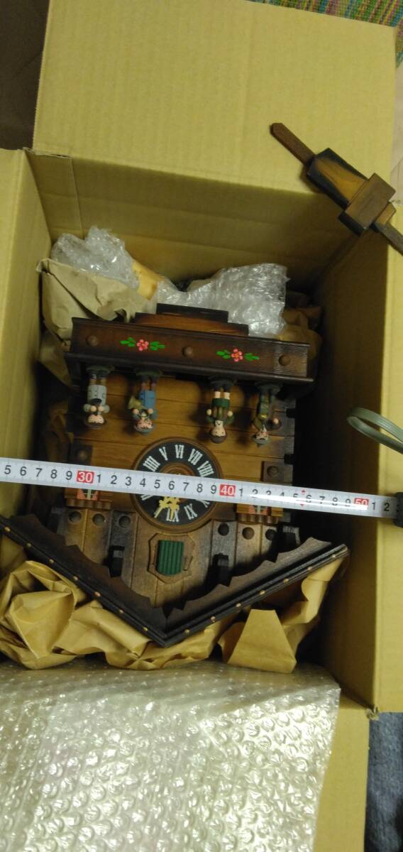 錘が下りきるまでにまたチェーンを引いて錘をあげて時計が動くという、アナログの時計です。最初のう1年くらいは時計を動かしておりましたが、あとはずっと最初の写真のようにインテリアとして飾っておりました。動くのは確認しましたが、時報等の動きについては確認しておりません。
