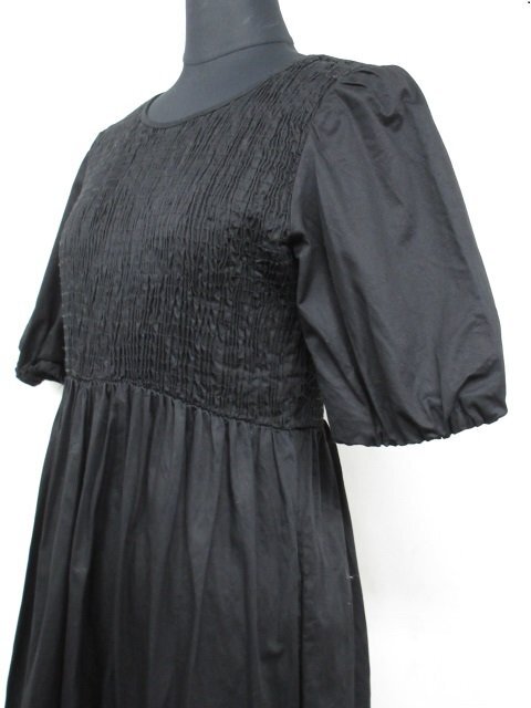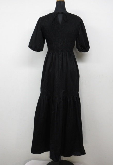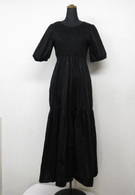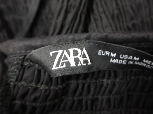 a3154 美品 ZARA ロングワンピース マキシ丈 コットン素材 黒 BLACK シャーリング リボン USA Mサイズ