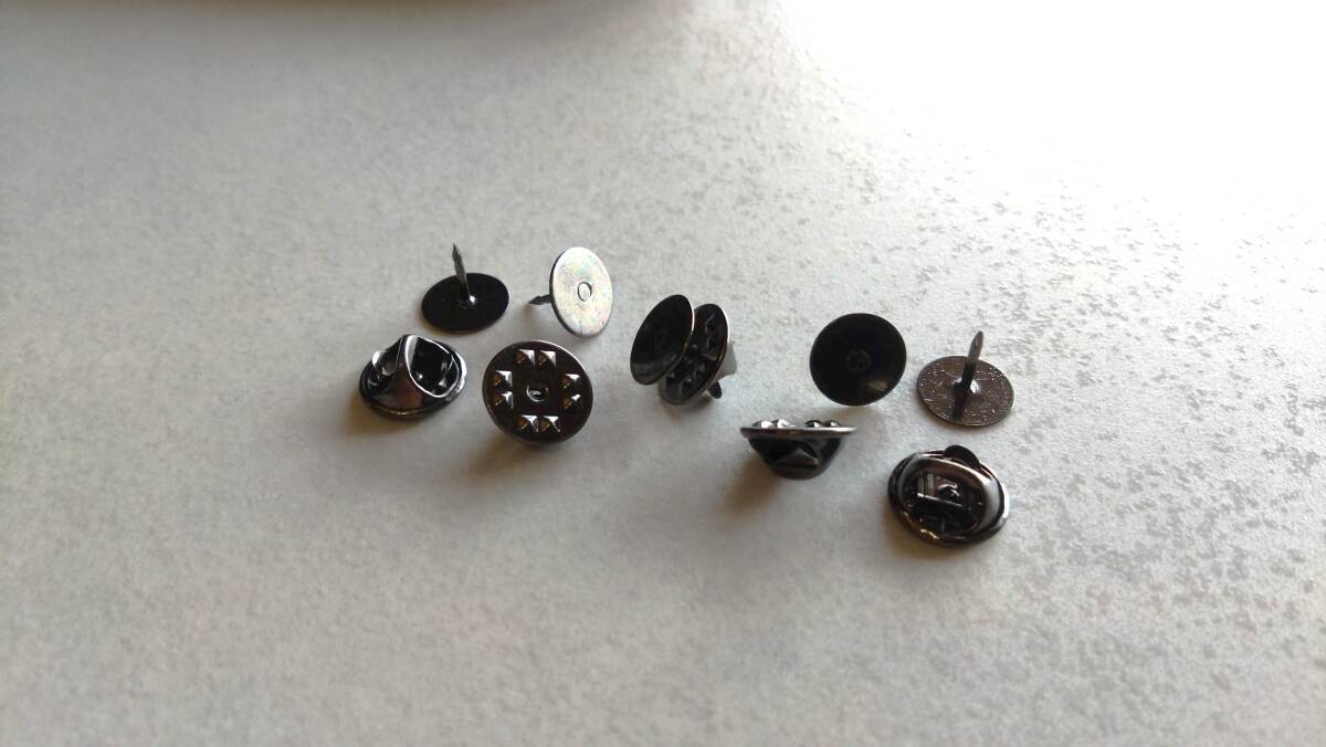 黒のピンバッチ留め具です。買ったけど結局使わずにおりました。