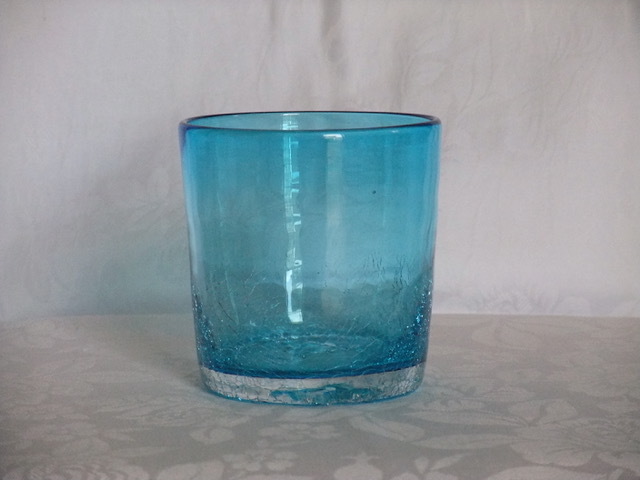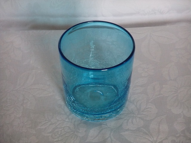 ●【新品】☆琉球ガラス☆焼ヒビ装飾ロックグラス★水色☆