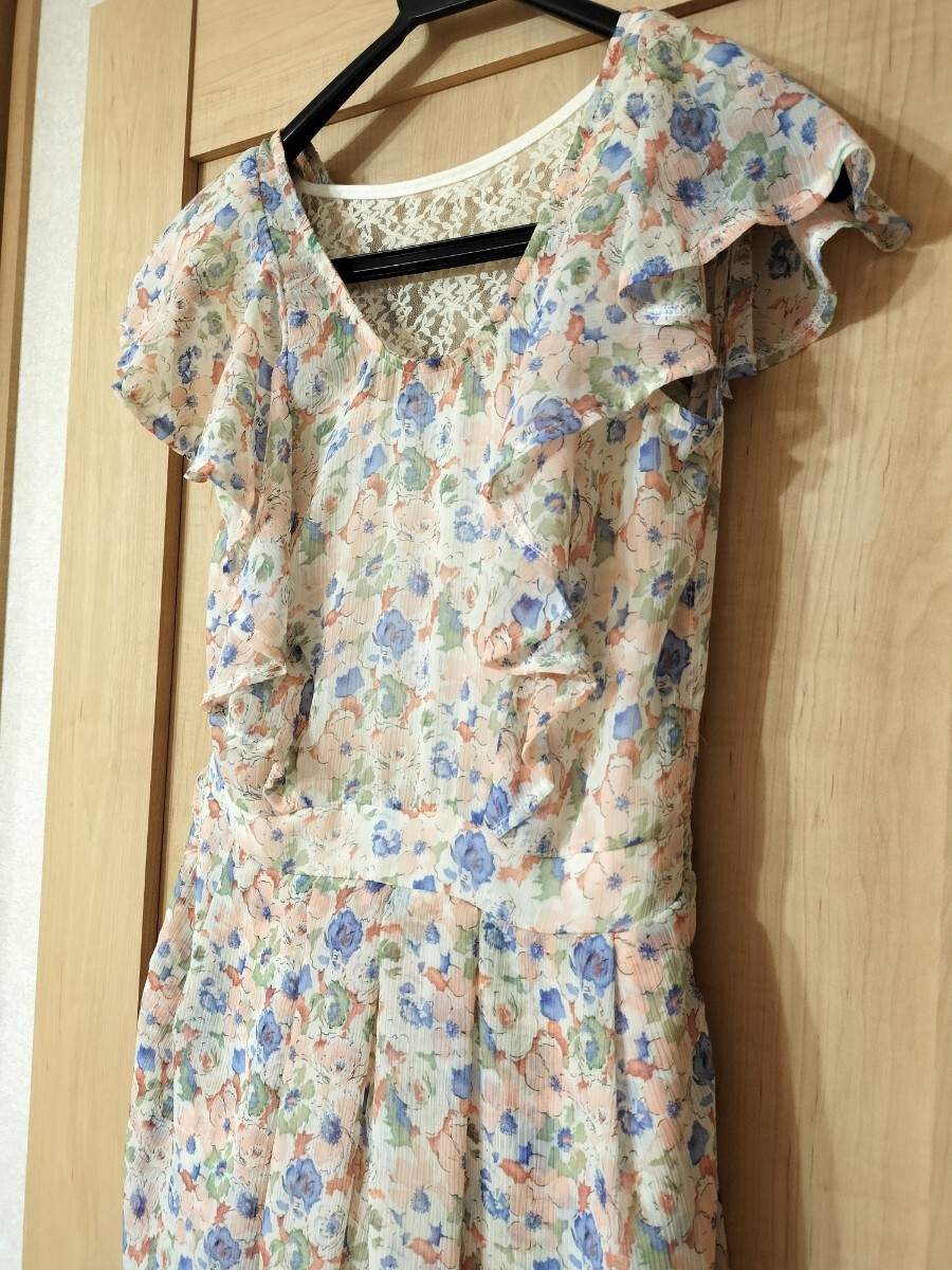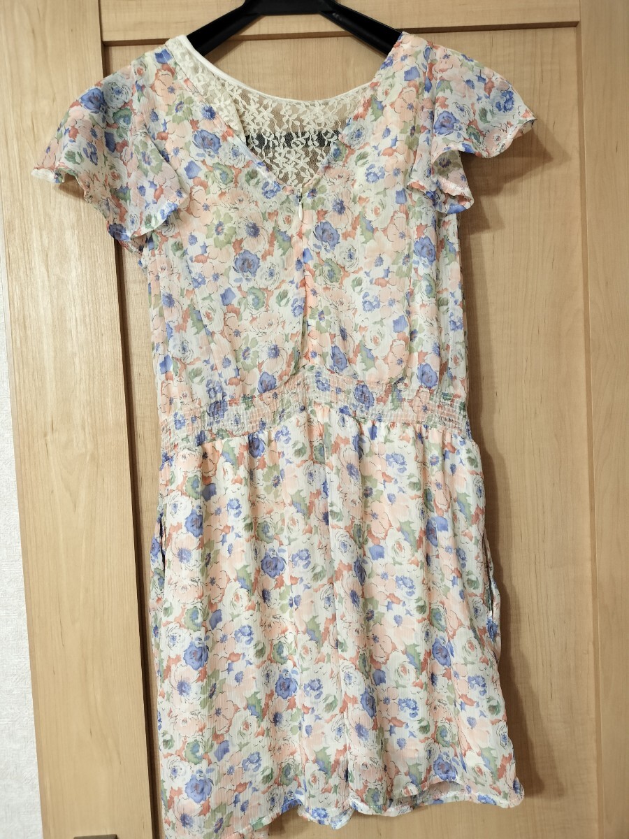 花柄やレースが可愛く、落ち着いた色味で可憐な雰囲気のキュロット型 ワンピースです。
