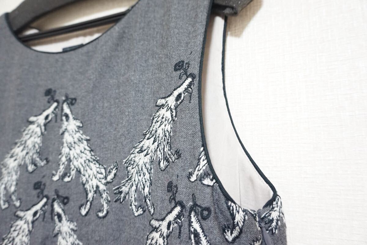 オオカミの刺繍がたっぷりでとても素敵なワンピースです。