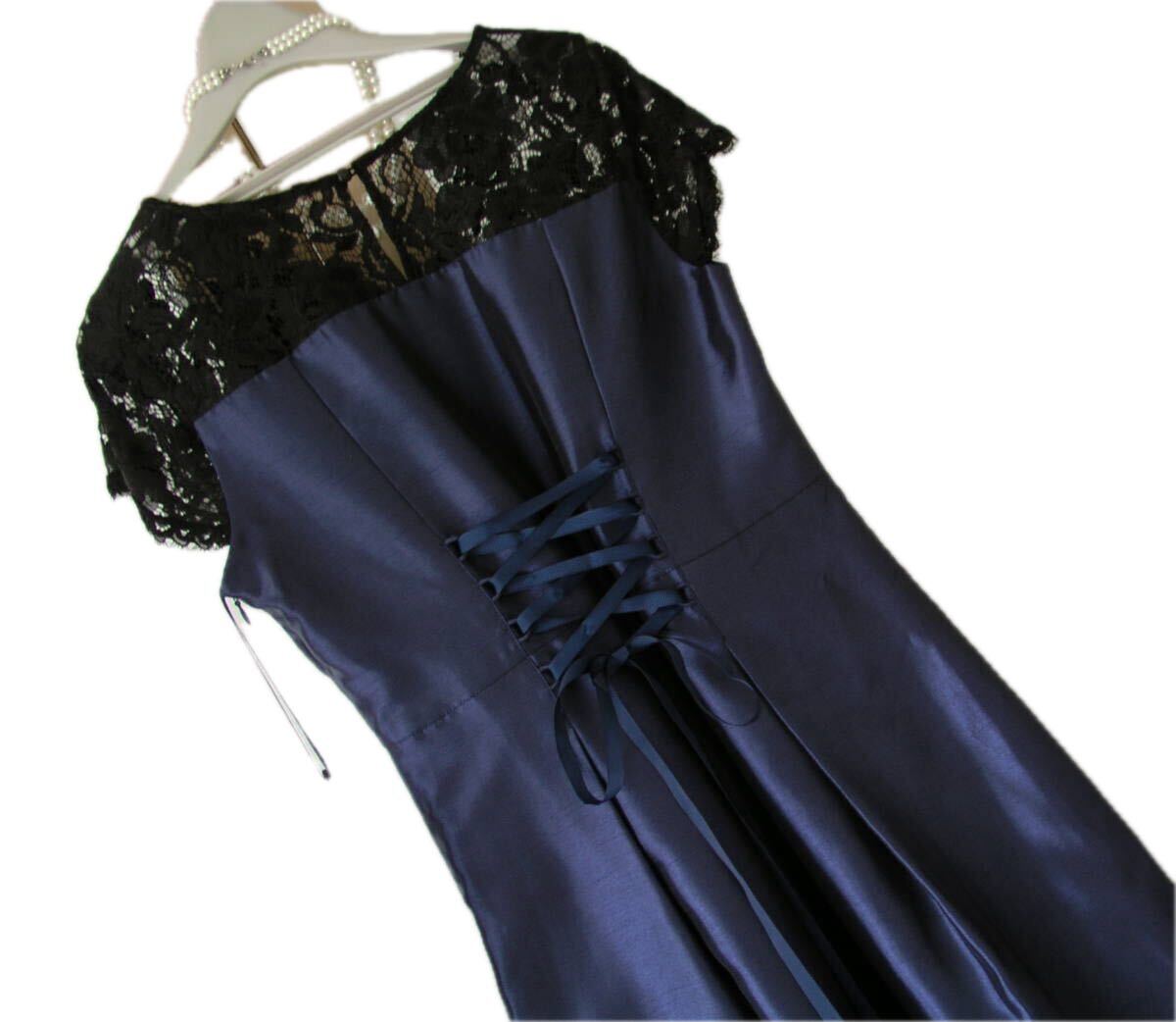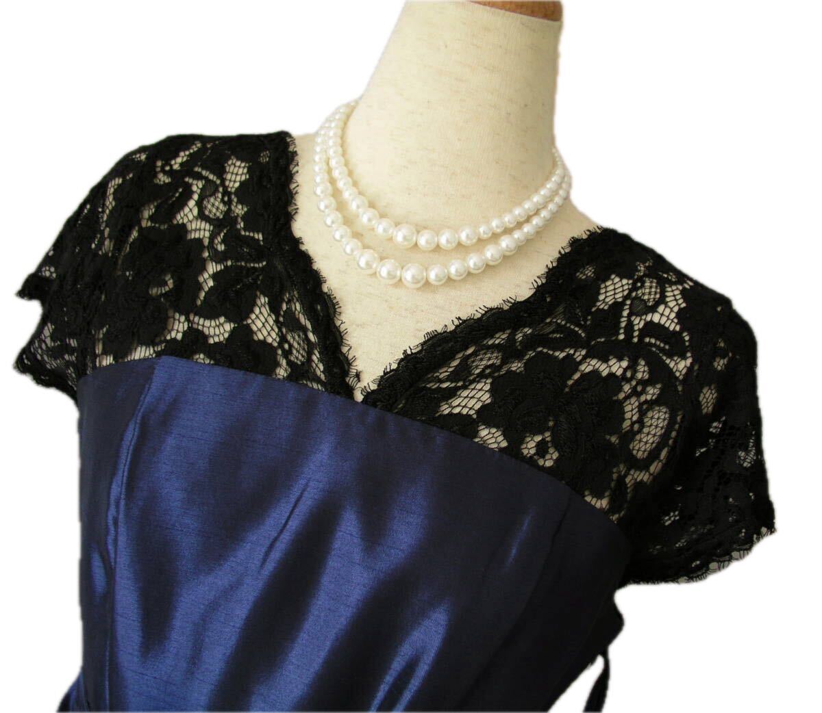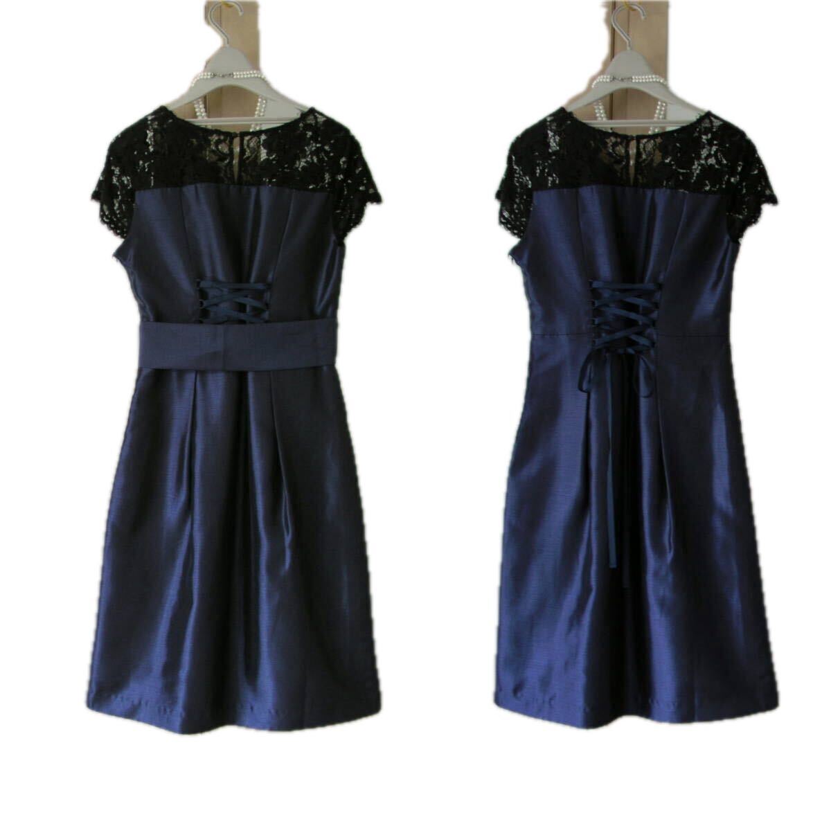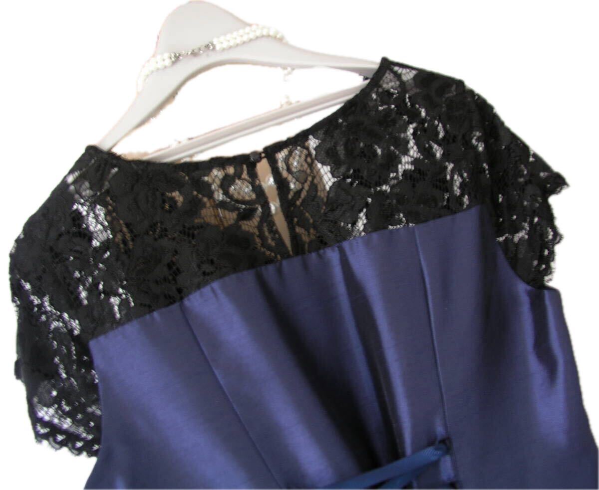 表記サイズ:38 実寸:着丈約94、肩幅約35、 脇下身幅約42 ** 実寸サイズにつきましては、多少の誤差はお許しください。 素材:ポリエステル100 レース部分:レーヨン45、ナイロン30、綿25 裏地:ポリエステル95、ポリエステル5 カラー:紺(レース部分黒) ※カラーに関しては、一般的に見えるお色を記載しております。 あくまでも私見ですので、予めご了承ください。 | ||