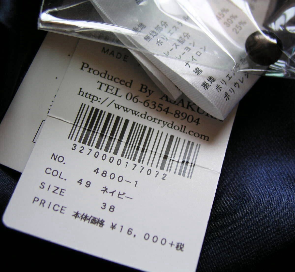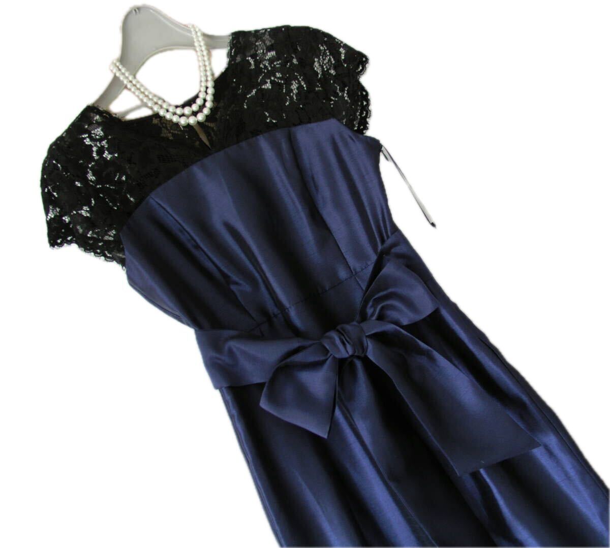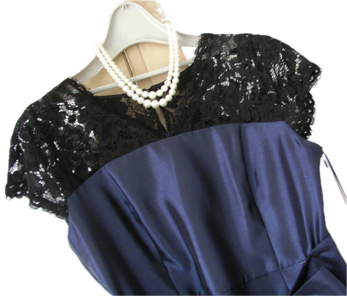 表記サイズ:38 実寸:着丈約94、肩幅約35、 脇下身幅約42 ** 実寸サイズにつきましては、多少の誤差はお許しください。 素材:ポリエステル100 レース部分:レーヨン45、ナイロン30、綿25 裏地:ポリエステル95、ポリエステル5 カラー:紺(レース部分黒) ※カラーに関しては、一般的に見えるお色を記載しております。 あくまでも私見ですので、予めご了承ください。 | ||