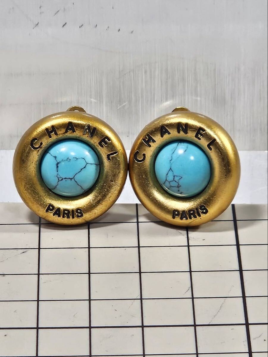 CHANEL シャネル 95P ロゴ ターコイズ イヤリング Y4255