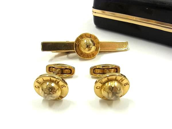 CELINE セリーヌ スターボール ヴィンテージ カフス カフリンクス ネクタイピン タイピン ビジネス 紳士 2点セットゴールド系 DG8844