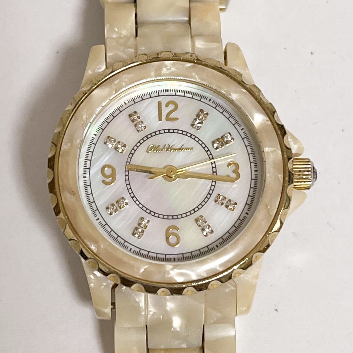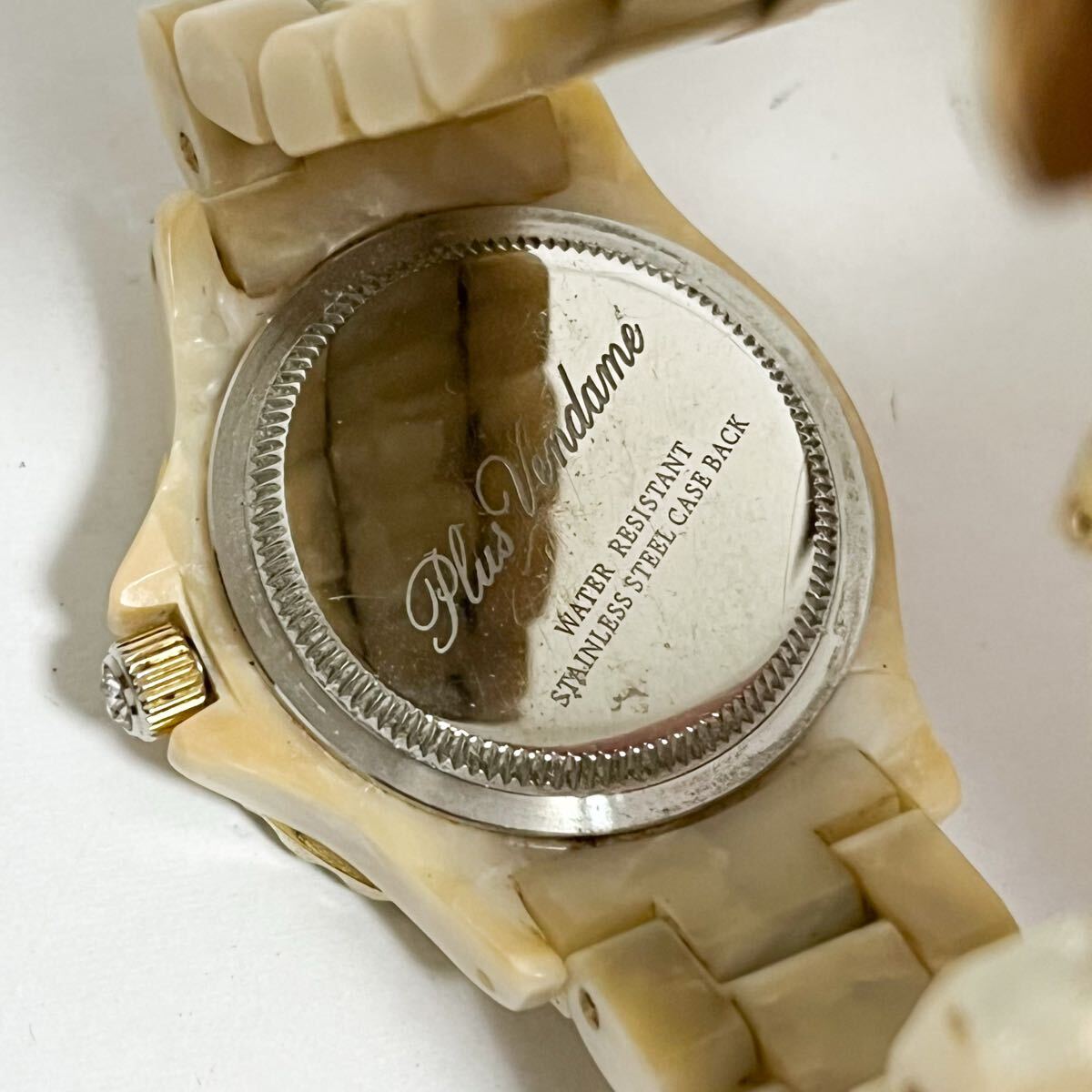 和822★ Plus Vendome プラスヴァンドーム クォーツ 3針 腕時計 ウォッチ シェル ベージュ レディース