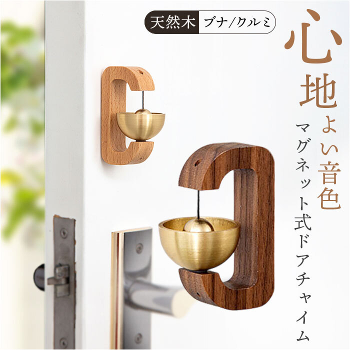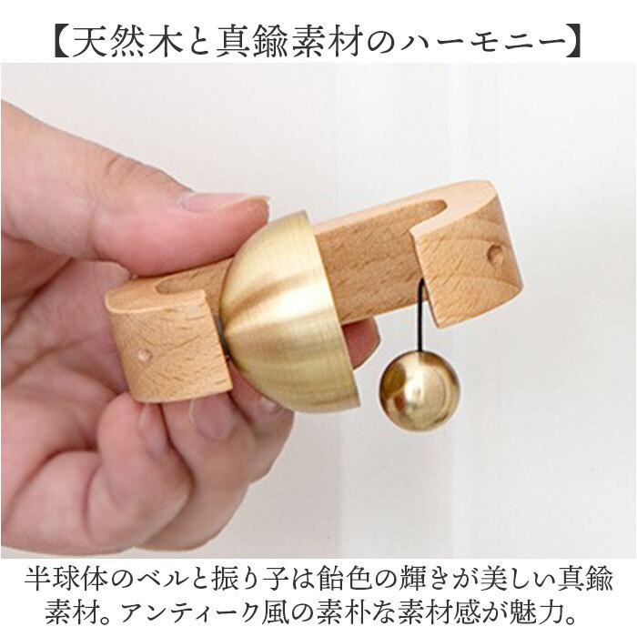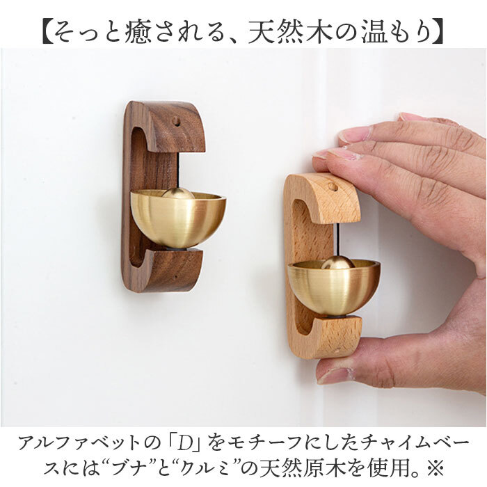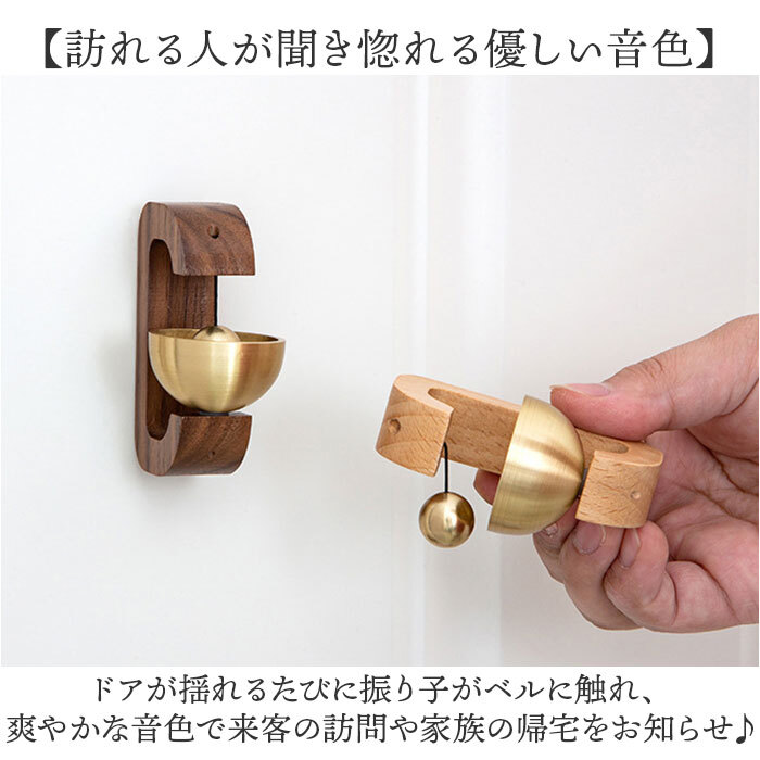 | 商品説明 | ・・【心地よい音色で玄関を包み込む】 ・天然素材が奏でる澄んだ音色が来客をお知らせ!「天然木 マグネット式ドアチャイム」が新登場! ・【そっと癒される、天然木の温もり】 ・アルファベットの「D」をモチーフにしたチャイムベースには“ブナ”と“クルミ”の天然原木を使用。 ・※色味の明るいライトブラウンタイプがブナ。深みのあるブラウンがクルミです。 ・【訪れる人が聞き惚れる優しい音色】 ・ドアが揺れるたびに振り子がベルに触れ、爽やかな音色で来客の訪問や家族の帰宅をお知らせ♪ ・【天然木と真鍮素材のハーモニー】 ・半球体のベルと振り子は飴色の輝きが美しい真鍮素材。アンティーク風の素朴な素材感が魅力。 ・【マグネットでピタッと取り付け!】 ・スチール製ドアなど金属の扉には、ネジやビスを使用せずにマグネットの力でピタッと簡単取り付け! ・【扉の素材を選ばずに設置可能】 ・木製の玄関ドアやガラス扉など、マグネットが吸着しない扉には付属の両面テープで取り付け可能。 ・【さまざまなシーンで大活躍!】 ・冷蔵庫のドアや収納棚の扉、掃き出し窓の引き戸など、さまざまな扉に取り付けて音色が楽しめる♪ ・【ショップのエントランスにも】 ・ご自宅用ドアチャイムにはもちろん、ショップのエントランスにもちょうどいいシンプルデザイン。 ・【使うほどに深まる味わい】 ・使うほどに素材の色彩が深まり、天然木と真鍮ならではの経年変化が楽しめるのも魅力のひとつ。 ・【新築祝いのプチギフトにオススメ】 ・ご家族のお出掛けもただいまも、涼やかな音色で見守るドアチャイム。新築祝いの贈り物にも最適。 |