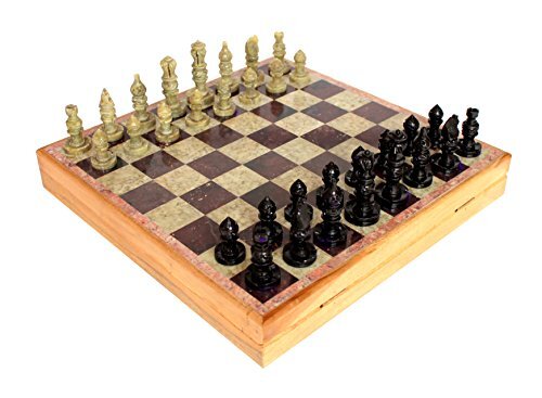 手彫りのインディアンストーンチェスセット。 チェスボードは約12インチ x 12インチの正方形で、キングの高さは約2.5インチです。 このチェスセットで使用されている石の主な色は、ホワイトとダークグレーです。 ボードには木製の象眼細工が施されています。 ポーンはブラックカラーの天然石とブラウンの天然石です。 すべてのピースは手彫りです。 チェスセット自体には、32個のポーンすべてを収納でき、サテンのような布がひもで締められています。 写真でわかるように、メインボックスは木製で、木製のボックスの上にストーンインレイが配置されています。 この商品は新品です。 このセットの小売価格は最低$150.00です。 画像はサンプル画像であり、大理石は天然石であり、実際の製品には画像とは多少の色や色合いの違いがある場合があります。 キングサイズは高さ2.5インチです。 他のピースはキングに比例します。 商品の重量 = 2 KG パッケージ商品の重量 = 配送時の容積重量で4kg、配送時の実際の重量で3 kg。 注:各アイテムは個別に作られているため、写真と実際のわずかな違いは避けられません。
