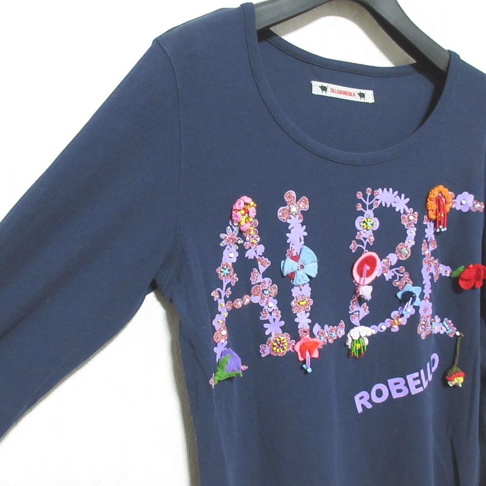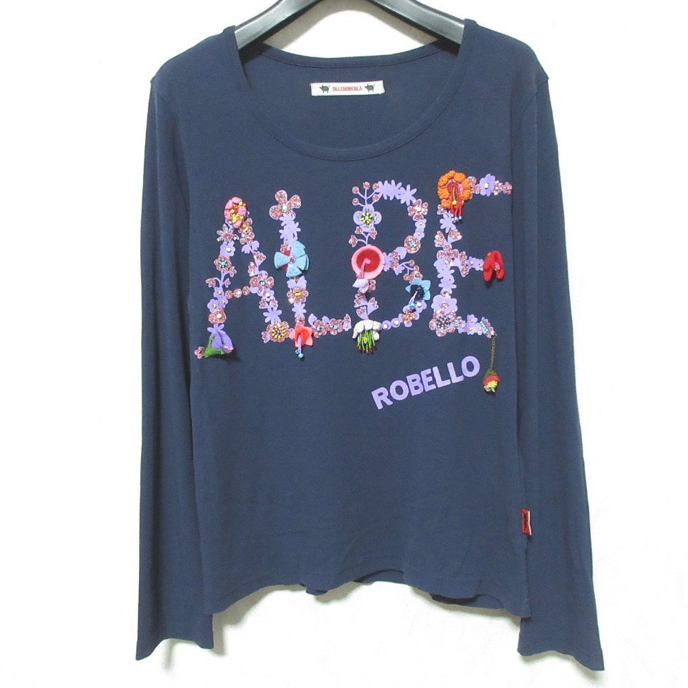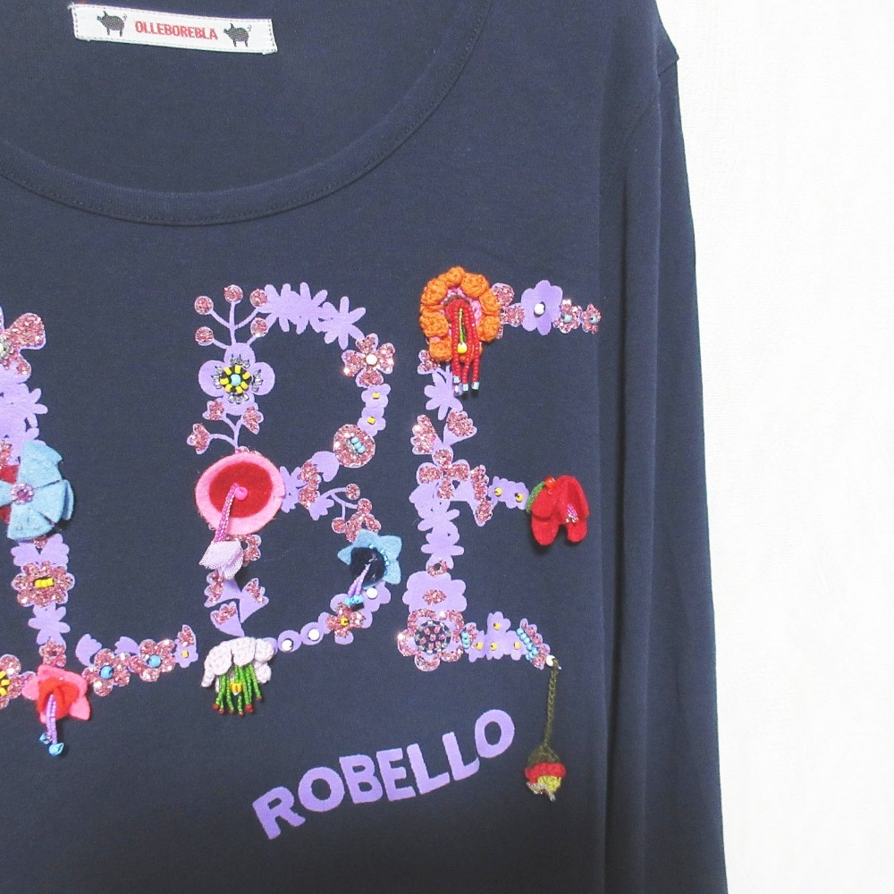 美品 OLLEBOREBLA オレボレブラ アルベロベロ フラワーロゴ ぶたさん 刺繍 長袖 ニットカットソー プルオーバー ネイビー