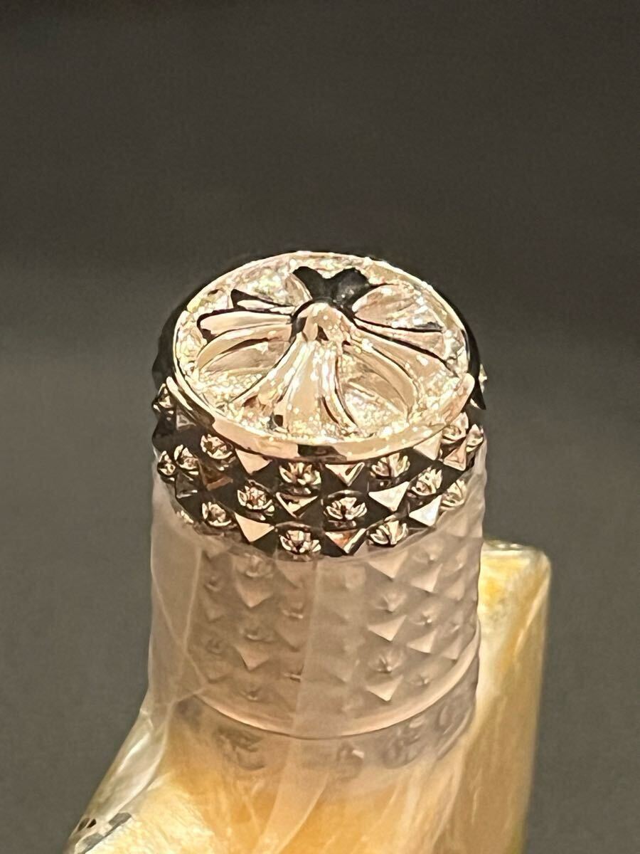 ボトルはガラス製、キャップはシルバー925製にロジウムメッキを施しており重さがあります。
