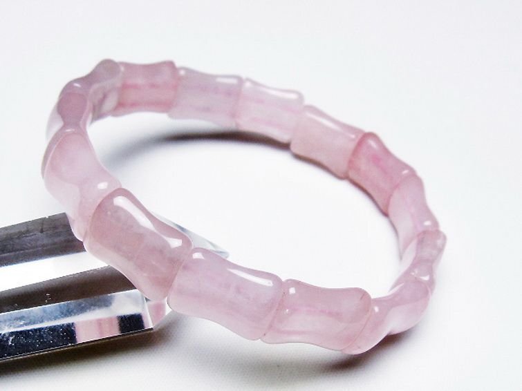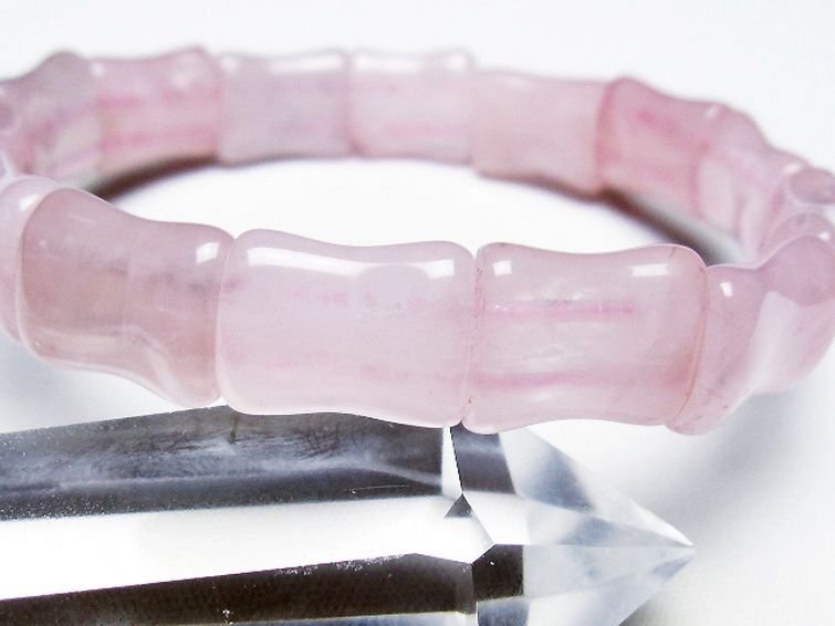 | ■商品名: ローズクォーツバングル ■商品ID: T189-3693 ■商品重量:約 27.1g ■商品サイズ: 高約:15mm 横約:12mm 厚約:7mm 内径円周約:173mm(±5mm) 【ローズクォーツ(紅石英)】 ローズクォーツは柔らかい優しいピンクの水晶です。アルミニウムや酸化チタンなどの結晶を含むためにピンク色になると考えられています。これらの微細な結晶が分散しているため、石全体の透明度が低く、濁っていたりひびがあります。高品質の透き通ったものや、スター効果が確認できるものは珍重されています。 この石は愛や優しさ、内面美を象徴する石です。ローズクォーツと言うと「恋愛運アップ!」といったイメージが一般的ではないでしょうか。 ローズクォーツは持ち主の内面の美を高め、女性の幸せや喜び、愛を呼び起こしてくれるとされています。また過去の傷ついた経験から、ついネガティブ思考になったり自分に対してマイナス思考になったりするような、負の感情を優しさで包み込み癒し、自分を許し愛せるようになるそうです。 この石は目当ての異性を連れてくるというよりは、内面的に美しくなり自分を良い意味で大切にする自己愛を知ることにより他者から愛されるという効果のようです。例えば自分なんか大嫌い、自分なんかどうせ、と思っている時に、他人から愛されるでしょうか。それよりも自分を認めて受け入れ、愛していると内面が輝いて魅力が溢れます。その魅力により周囲の人から愛され、他人から愛されることにより一層他人を愛せるようになるという、愛を呼び込む循環を造ってくれるそうです。 そういった意味で、実は恋愛運アップというよりはもっと定義の広い愛情運アップの効果があるとされています。 こういった広い意味での愛を得ることができるとされ、人に対して思いやりを持ち許せるようになることから、人間関係の改善や、苦手だけれどどうしても付き合わなければならない人がいるといった場合でも活躍してくれることでしょう。 【水晶(石英、クリスタルクォーツ)】 水晶とは石英を指しますが、一般的に無色透明のものをクリアクォーツやロッククリスタルと呼んでいます。 水のように美しく透き通ったものが良いと思われがちですが、内部にヒビや他の鉱物などのインクルージョン(内包物)が入っているものがあり、それが天然物の証。また、インクルージョンによって様々な種類に分類され、それぞれ違った印象を与えてくれます。 古くから呪い事に使われてきた水晶に秘められたパワーはとても万能で、あらゆる場面に対応するといわれています。特に邪気を祓う力が強いため、人間関係を円滑にしたり、心身をクリアな状態にしたい場合に最適です。また空間を浄化する作用もあるとされ、インテリアとしても高い人気を誇っています。 石自体に強い自浄作用があり、他のパワーストーンが吸収した負のエネルギーを浄化するといわれています。更にアクセサリーとして他の石と組み合わせる場合、それぞれの石の個性を引き出しバランスを取ってくれる効果があるそうなので、ぜひとも組み込んでおきたいですね。 パワーストーン入門に最適な水晶ですが、愛好家にとってはかなり奥が深く最後に行き着くのもこの石なんだそうです。何もかもを見透かすような透明な水晶には、本当に神秘的なパワーが宿っているのかもしれません。 |